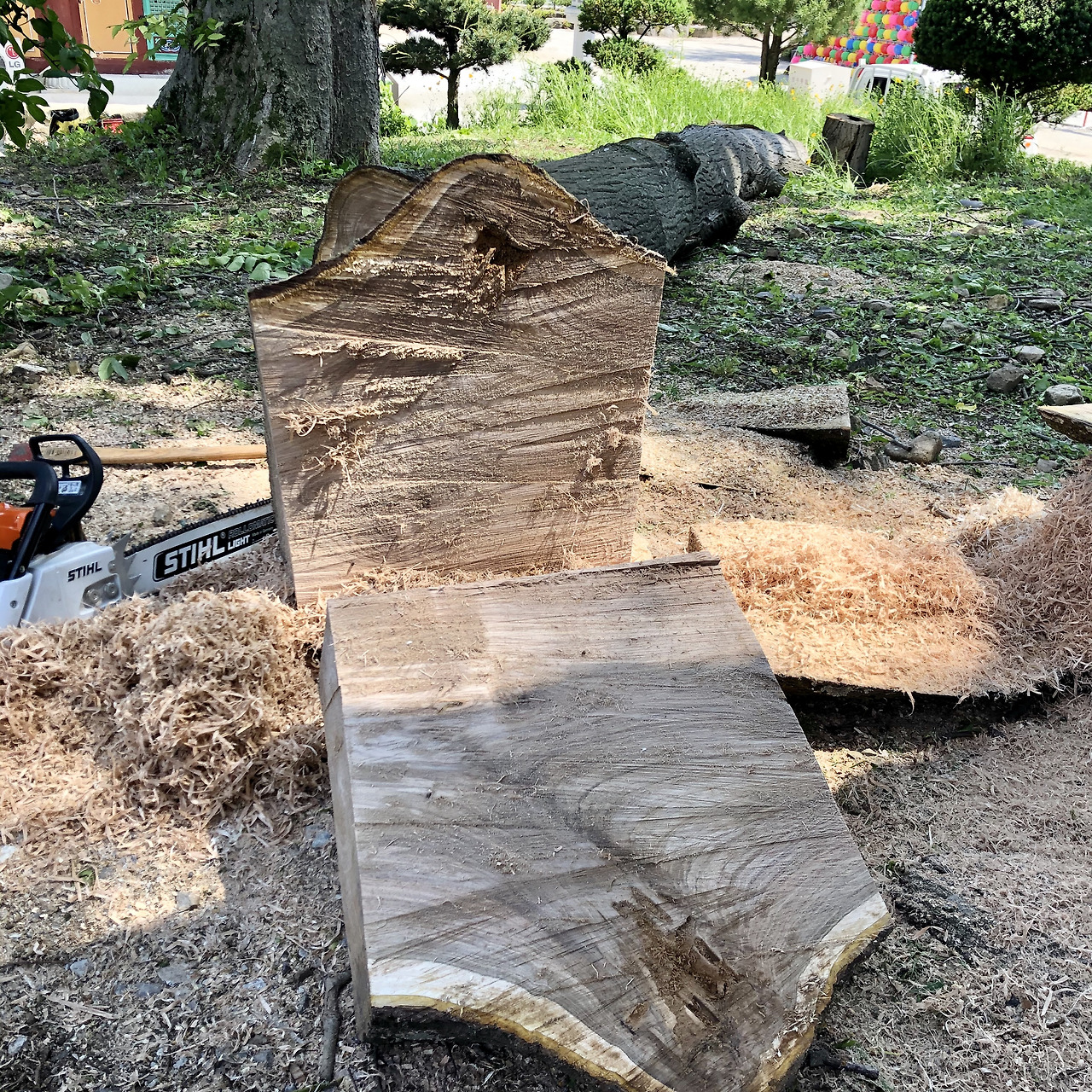 아래사진은 어느 한 절에서 위험수목으로 자라난 호두나무를 제거하고 찍은 사진이다. 심재가 주는 색상이 참으로 매혹적이다.