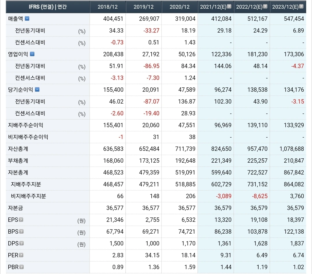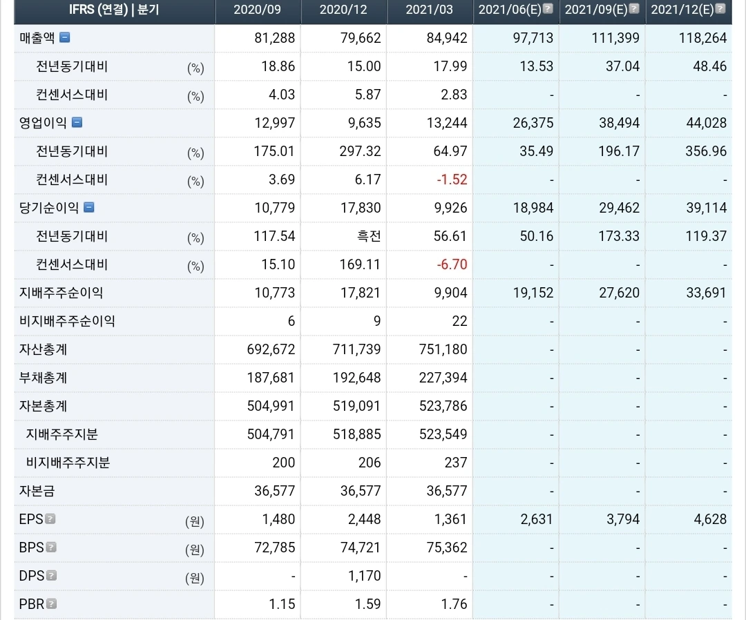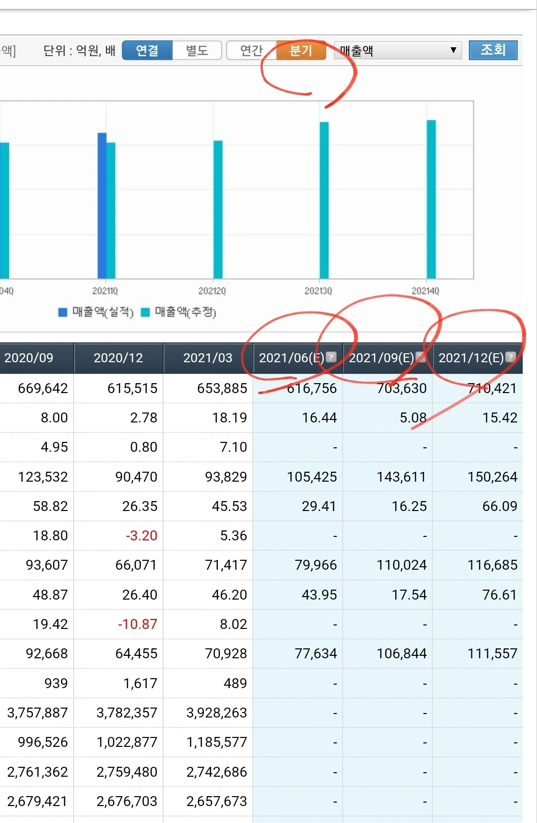 상장기업은 분기별로 실적을 발표하는데 기업이 실적을 발표하기 전에 증권사에서는 미리 실적을 추정한다. 향후 3개 분기와 3개년의 실적을 추정하여 발표한다.
