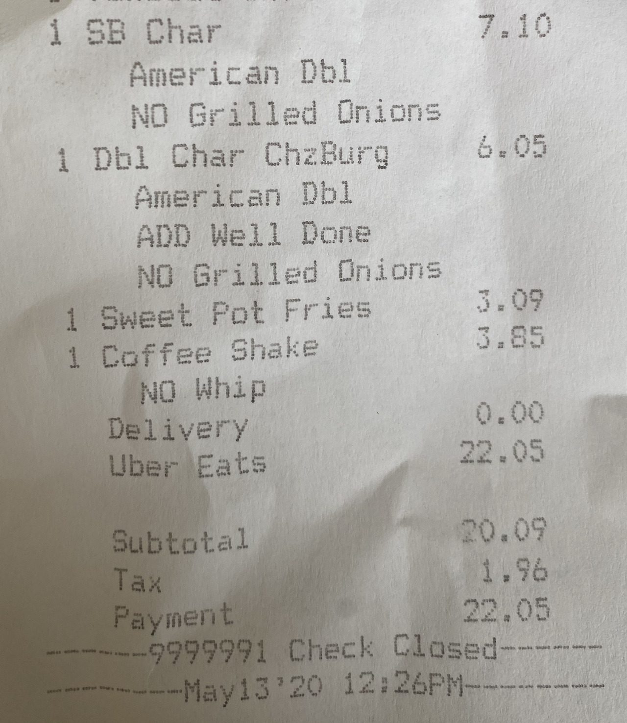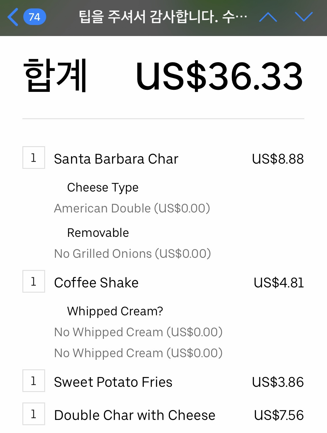 본의 아니게 집에 갇힌 식구들이 삼식이가 됐으니 설거지하고 돌아서면 다시 밥 차릴 때입니다. 허리가 휩니다. 반복된 집안일에 말 그대로 허리 통증이 생겨 밥을 못해서 우버 잇츠로 햄버거를 배달시켰습니다. 햄버거 둘, 셰이크 하나, 고구마튀김 하나, 수수료에 배달부 팁까지 $36, 가게에 가서 직접 포장해 왔다면 $22입니다. 서비스를 이용했다면, 당연히 사용료를 내야죠. 하지만, $10짜리 햄버거 먹는데 인당 $7을 더 지불해야 하는 건 가당찮은 폭리입니다. 도어 대시, 포스트 메이츠 등 다른 배달앱들도 비슷합니다. 최근 한국에서 가맹점 수수료 인상 문제로 논란이 됐던 배달의 민족은 적어도 미국 소비자 시점에서는 양반입니다. 배달비 2-3천 원만 부담하면 되니까요. 한국 배달앱을 몰랐다면 모를까, 미국에서 배달앱으로 음식 시켜먹고 싶은 생각은 아주 사라졌습니다.