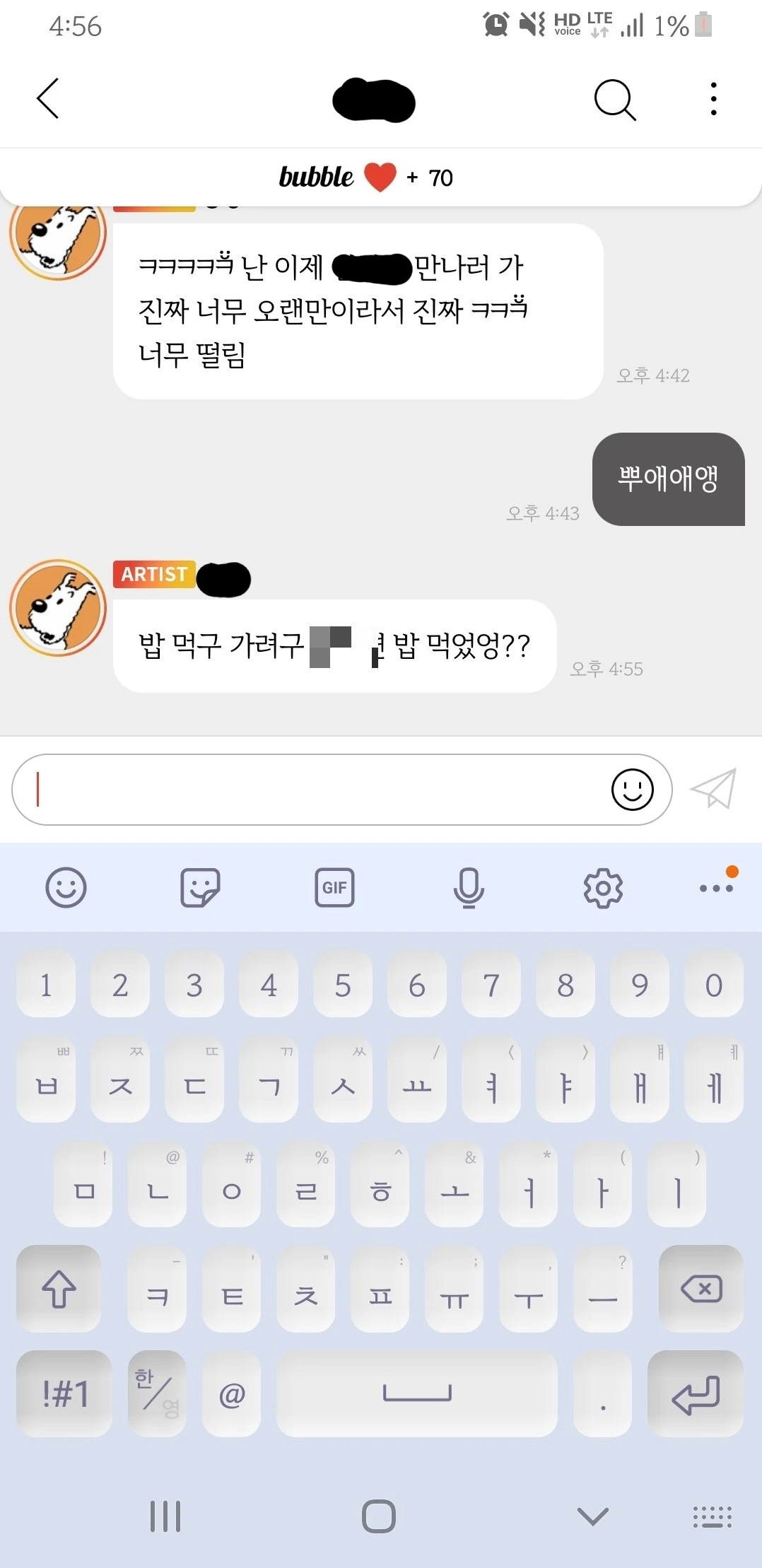 버블을 이용하면 더이상 유타처럼 가뭄에 콩 나듯 오는 스타의 답장을 바라며 목매지 않아도 된다. 물론 스타가 진짜 내 메시지를 읽었는지의 여부는 모른다. 그러나 어쩌다가 티키타카가 성공하면 왠지 스타가 내 메시지를 읽고 답장을 했다는 근거 없는 행복감에 사로잡힌다.