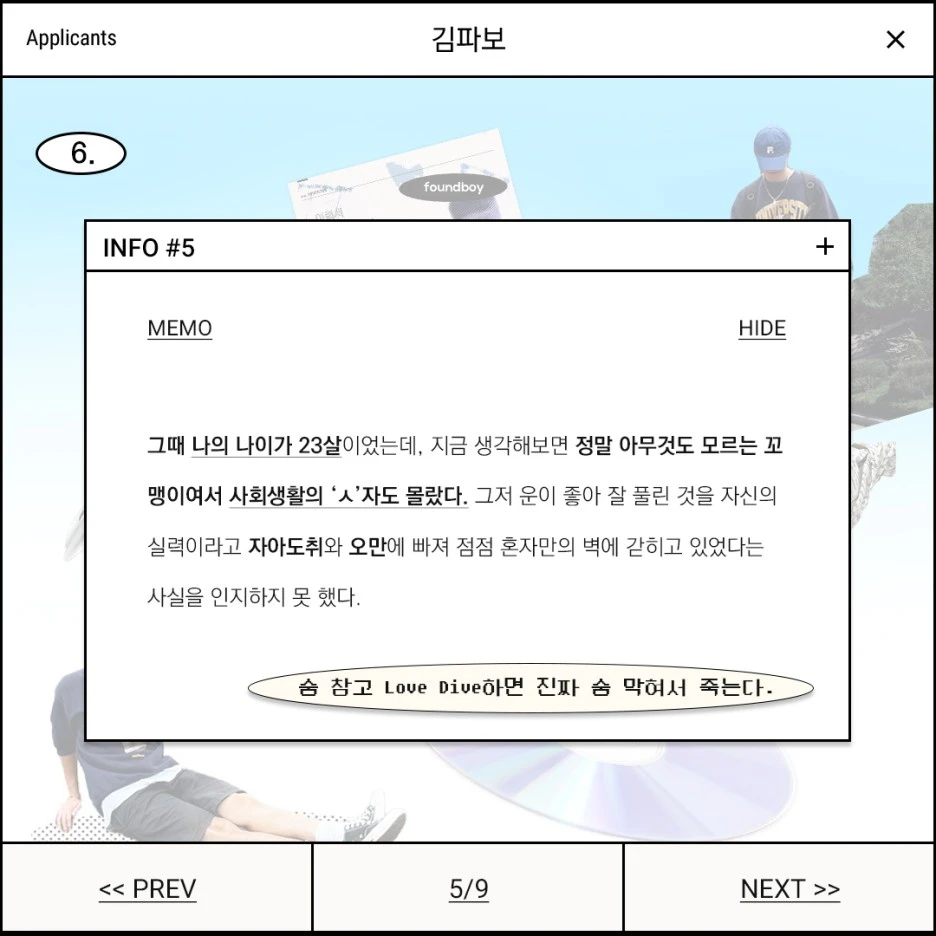 그때 나의 나이가 23살이었는데, 지금 생각해보면 정말 아무것도 모르는 꼬맹이여서 사회생활의 ‘ㅅ’자도 몰랐다. 그저 운이 좋아 잘 풀린 것을 자신의 실력이라고 자아도취와 오만에 빠져 점점 혼자만의 벽에 갇히고 있었다는 사실을 인지하지 못 했다.