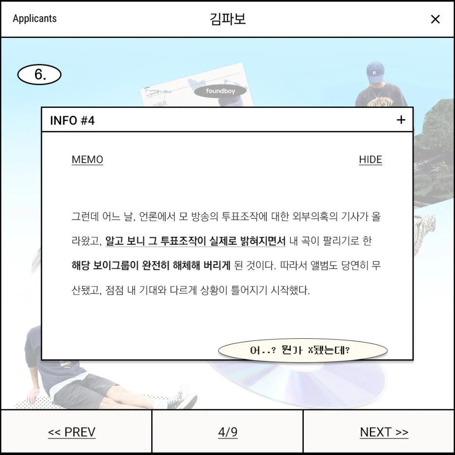 그런데 어느 날, 언론에서 모 방송의 투표조작에 대한 외부의혹의 기사가 올라왔고, 알고 보니 그 투표조작이 실제로 밝혀지면서 내 곡이 팔리기로 한 해당 보이그룹이 완전히 해체해 버리게 된 것이다. 따라서 앨범도 당연히 무산됐고, 점점 내 기대와 다르게 상황이 틀어지기 시작했다.