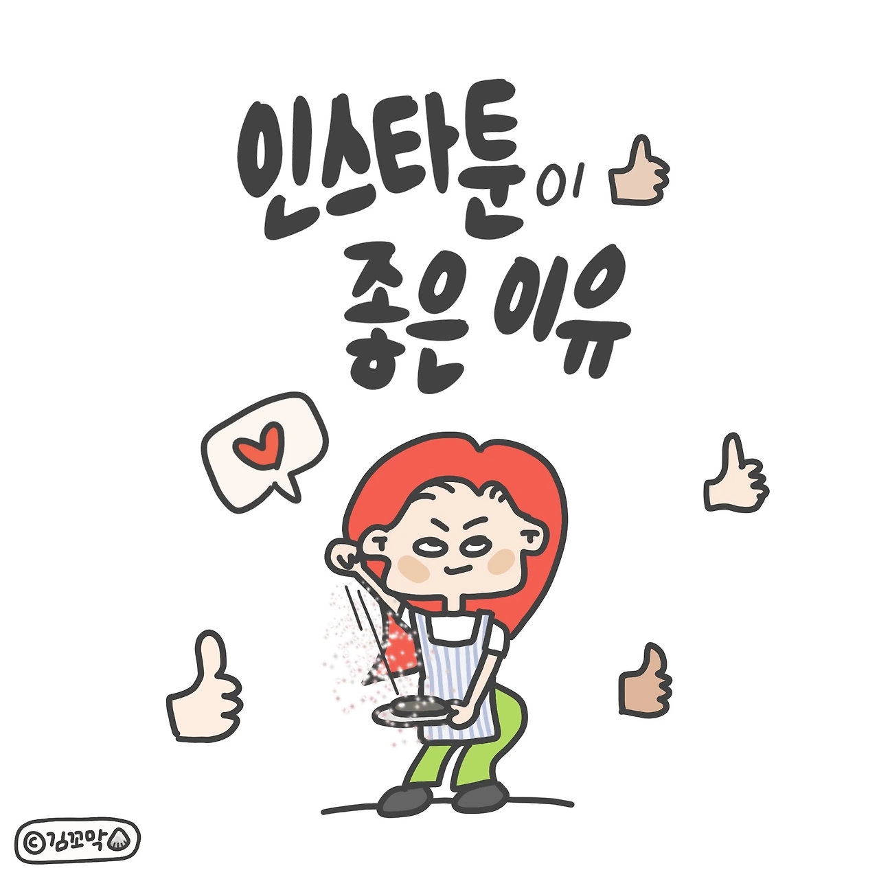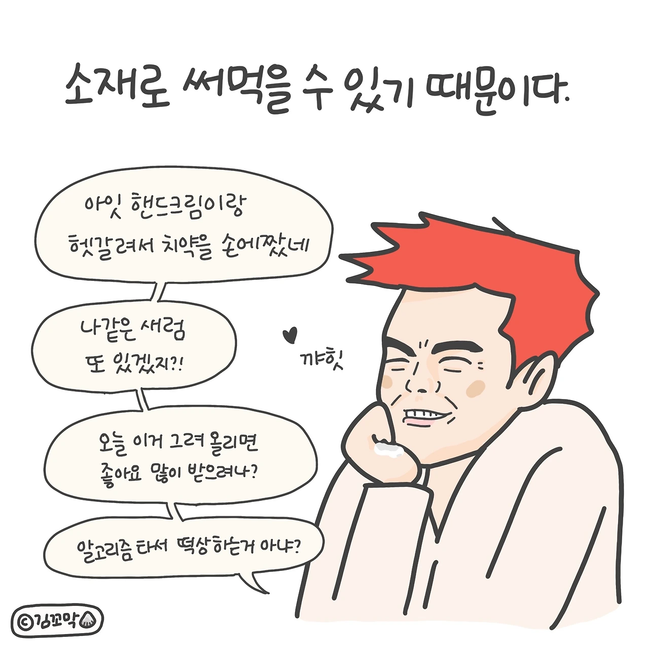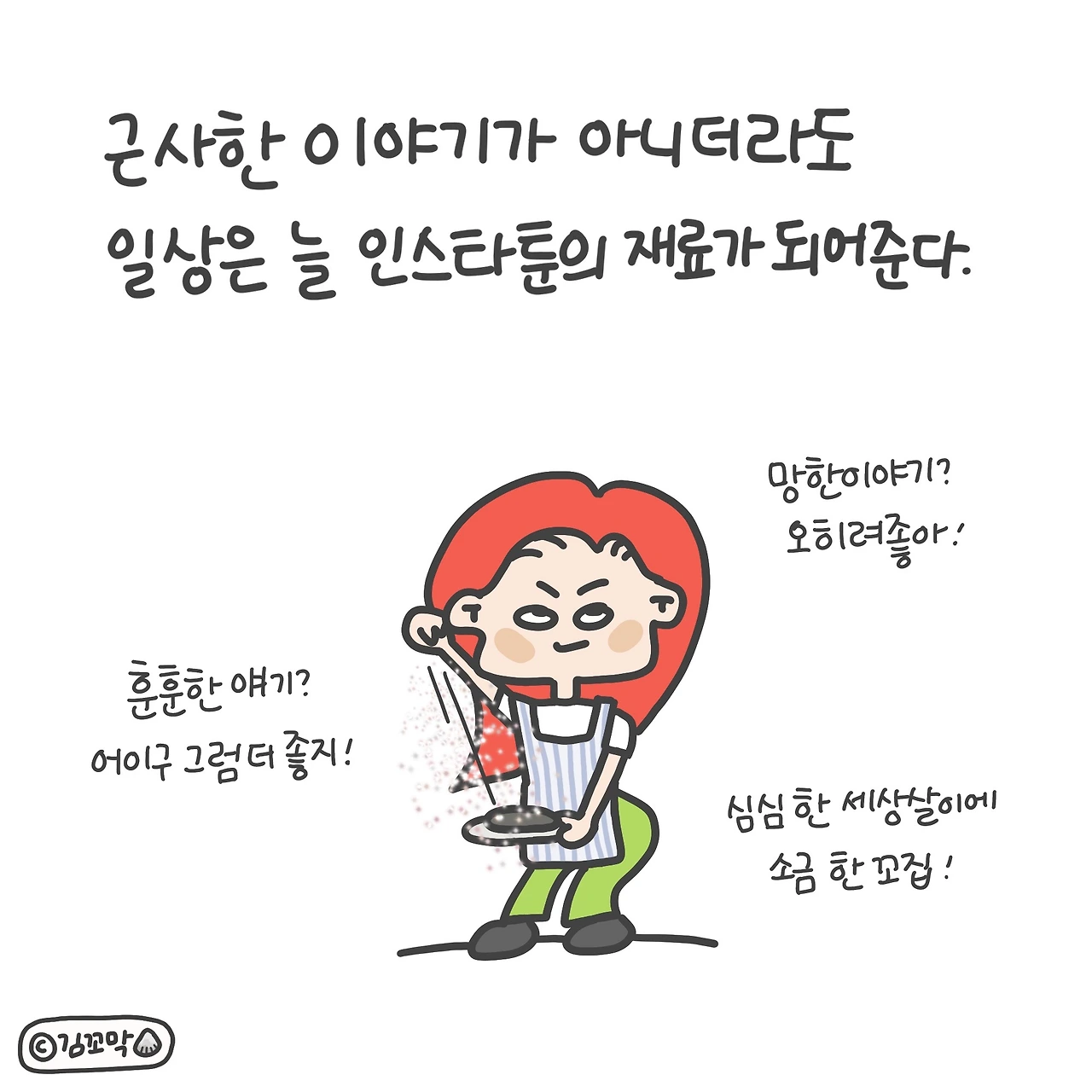 하지만 당황하지 않은 이유는 소재로 써먹을 수 있기 때문이다. (오히려 좋아) 근사하고 화려한 이야기가 아니더라도 소소한 일상은 늘 인스타툰의 좋은 재료가 되어준다.