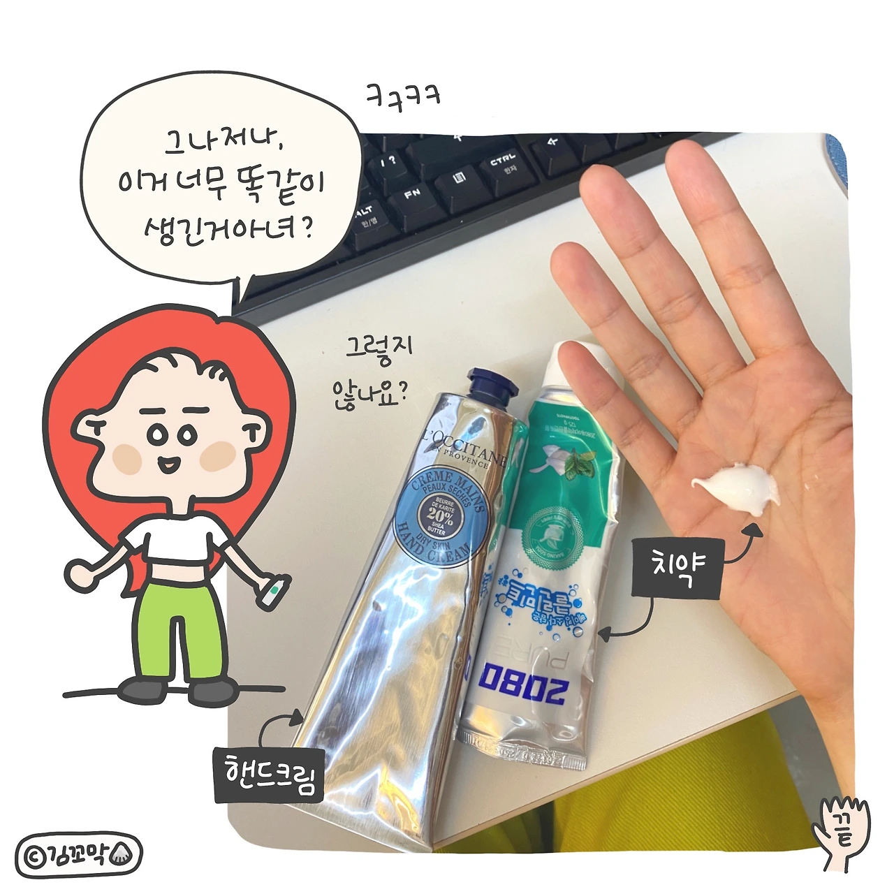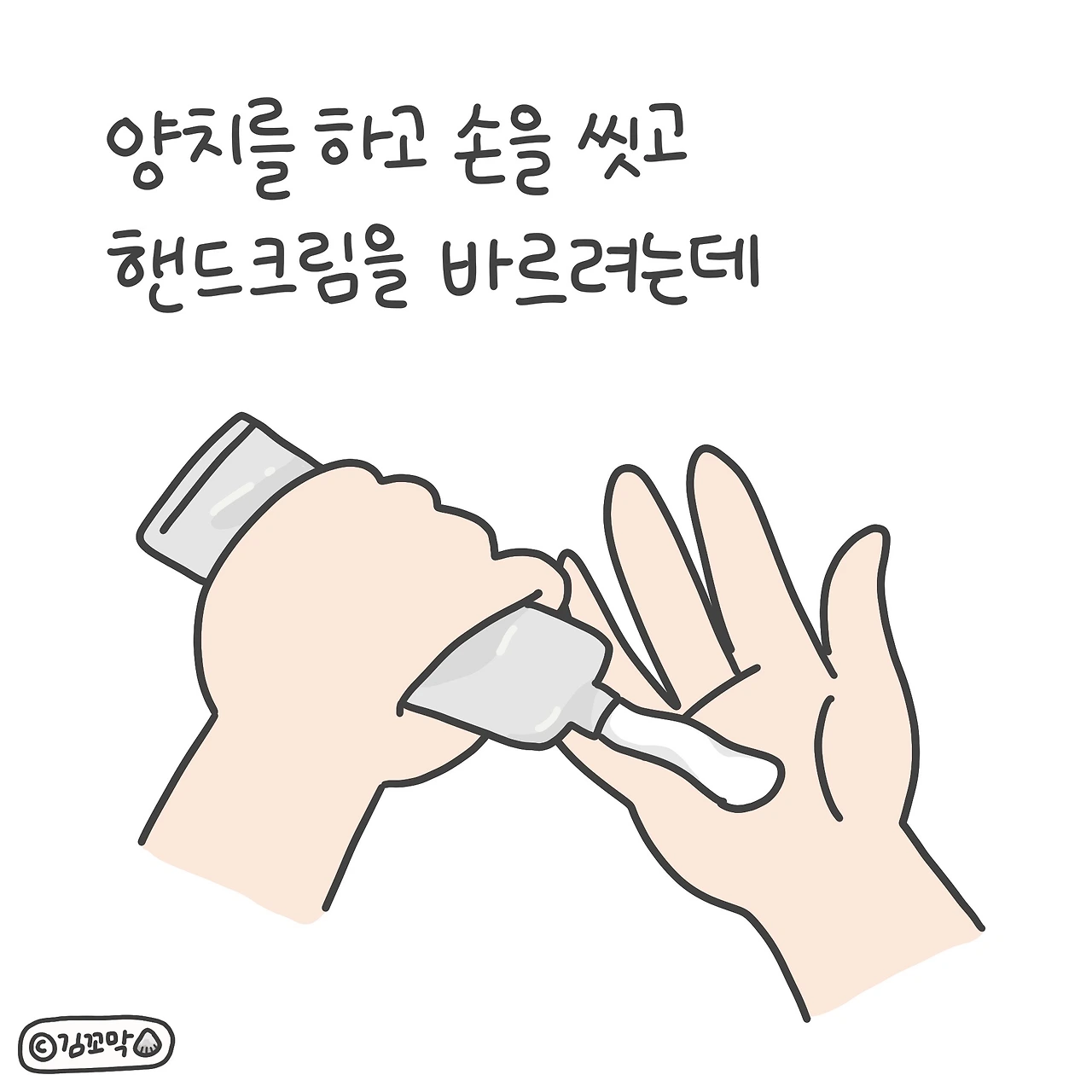 양치를 하고 손을 씻고 핸드크림을 쭈욱 짰는데...