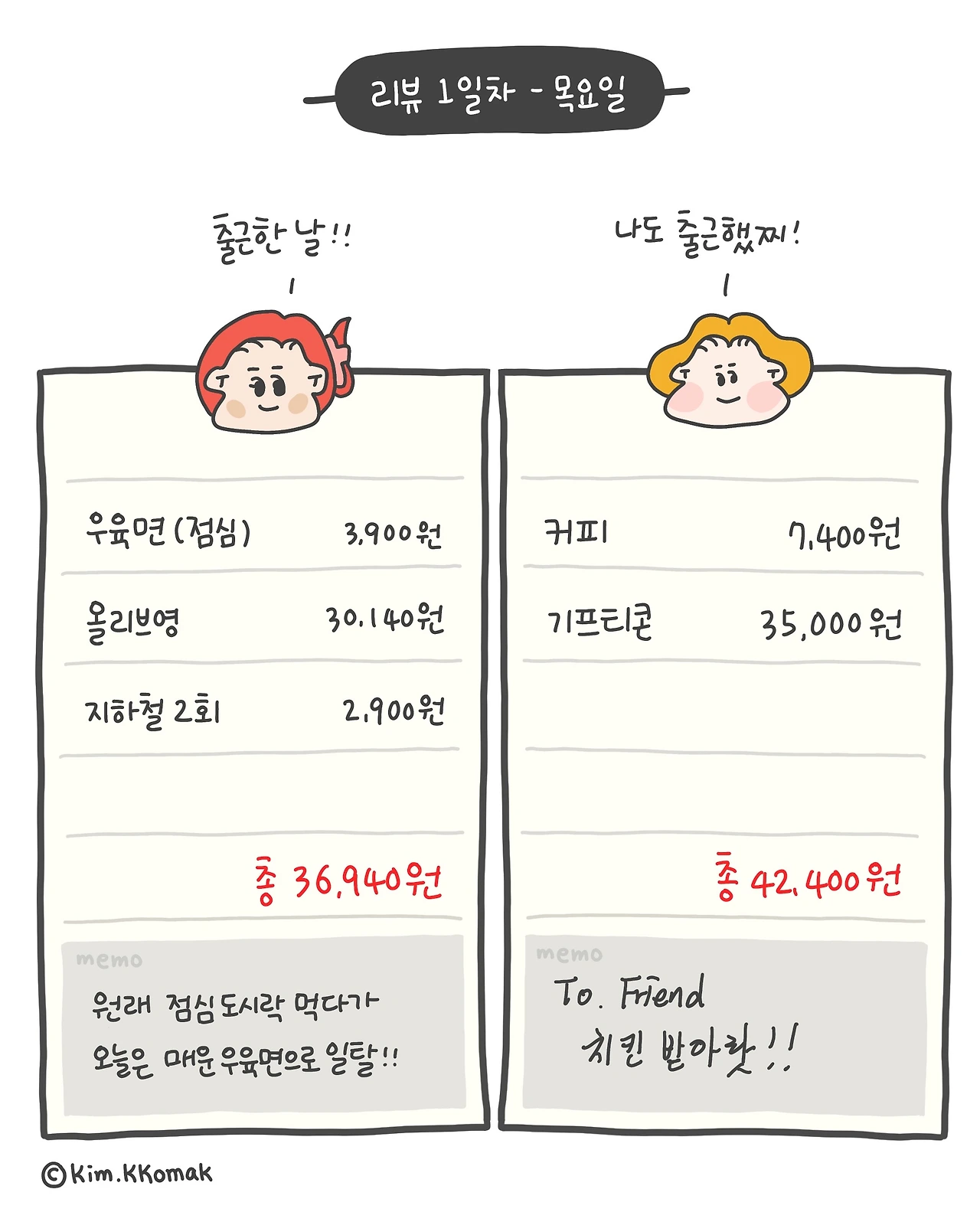 원래 각자의 용돈은 너무나도 불투명하게 관리되고 있지만.. 그래도 한 번쯤은 까 보면 재밌을 것 같아서 리뷰해보았어요.