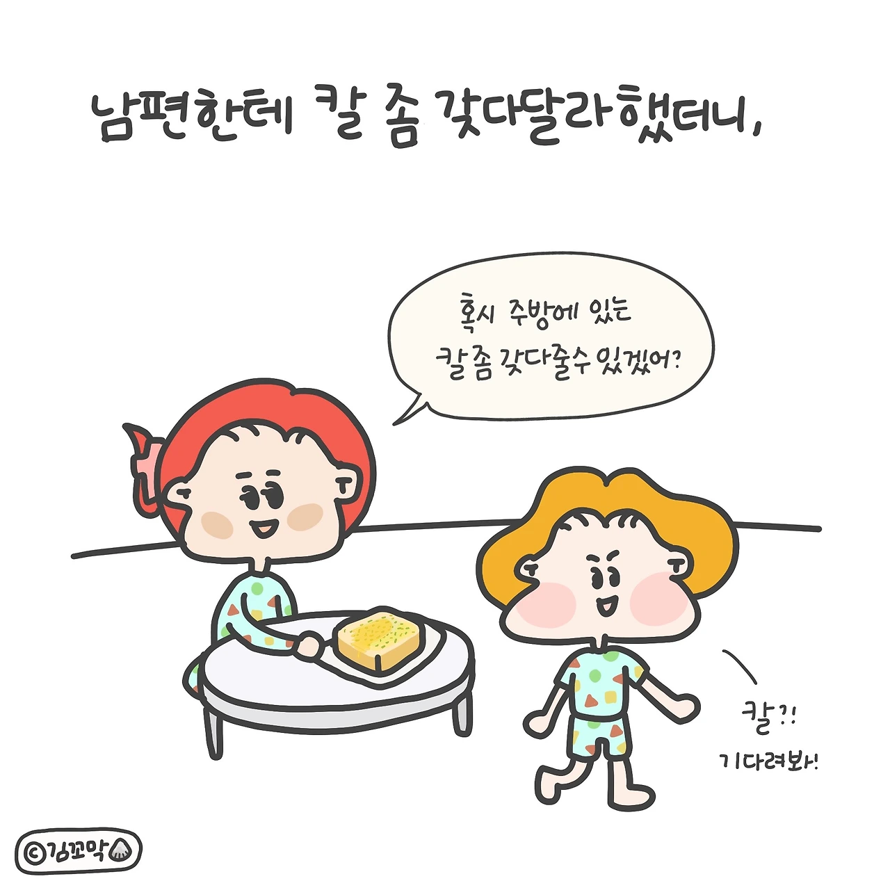 "혹시 주방에 있는 칼 좀 갖다 줄 수 있겠어?"