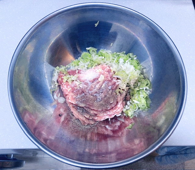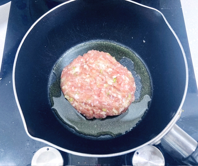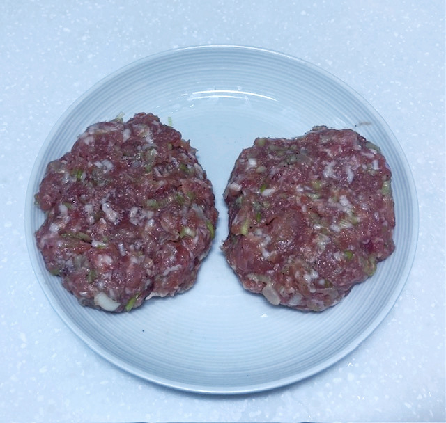 통통한 빵을 뒤로하고 이제 햄버거 패티를 만들어 볼까요?! 패티의 경우 기존의 햄버거에는 소고기를 쓰지만 저는 어떤 고기라도 상관없다고 생각합니다. 어떤 고기든 잘 다져서 패티를 만들어 주면 되니까요. 이번에는 돼지고기 다진 게 남아있어서 사용해보려 합니다. 다진 고기를 볼에 담고 소금, 후추 간을 해주고 다진 파 한 줄 과 양파를 넣어주시면 됩니다. 저는 양파가 없어서 파만 넣었습니다. 그리고 패티 반죽으로 잘 섞은 후 예쁘게 성형해서 구울준비를 해주시면 됩니다.