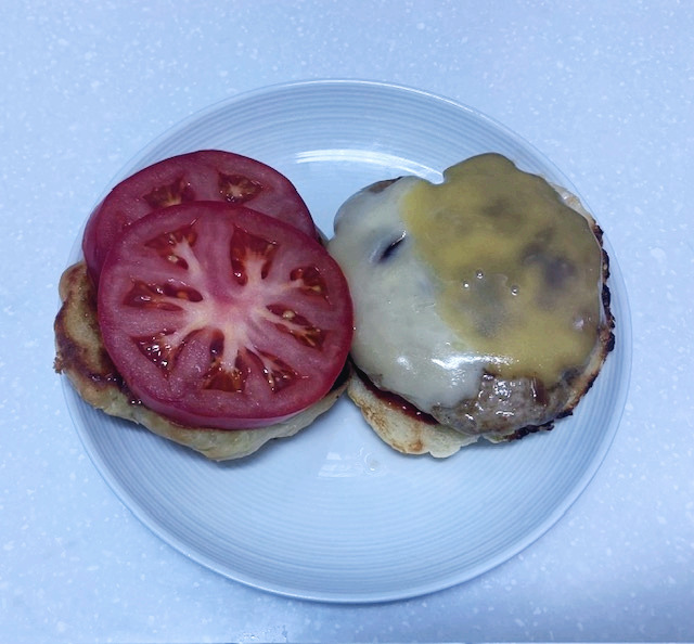 패티의 경우 어느 정도 익게 되면 그 위로 치즈 1~2장을 얻어 치즈를 잘 녹여 주시고 햄버거 조립을 준비해 주시면 됩니다.
