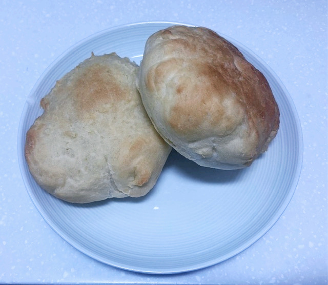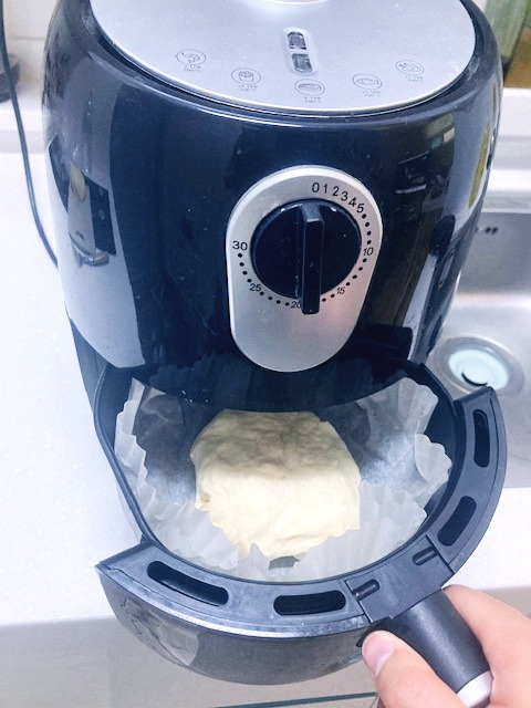 반죽이 2배 정도 부푼 것을 확인 후 다시 한번 공기를 빼주고 2개 분량으로 나눠 준 후 2차 발효를 진행합니다. 2차 발효도 따뜻한 곳에 두고 1시간 진행해 주시고 이후 구워주시면 됩니다. 저는 집에 오븐이 없어서 에어프라이를 이용했고 180도 에서 5분간 예열 후 180도에서 25분 구워주시고 빵을 뒤집어 5분 더 구워 주시면 됩니다.