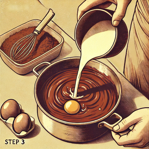 그리고 우유 130g을 두 번에 나눠서 덩어리 지지 않는 Texture로 만들어주세요!