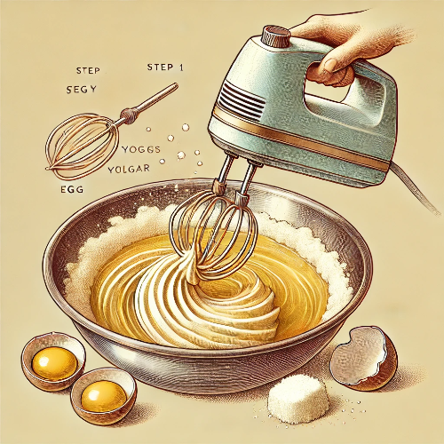 흰자에 설탕 130g을 3번에 나눠서 핸드믹서를 들고 "부드러움이여 솟아나라~!" 휘핑