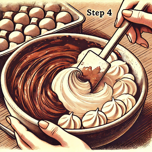 머랭의 폭신함이 살아있는 상태로 두 반죽이 섞어주면 성공! (밀크 초콜릿 색)