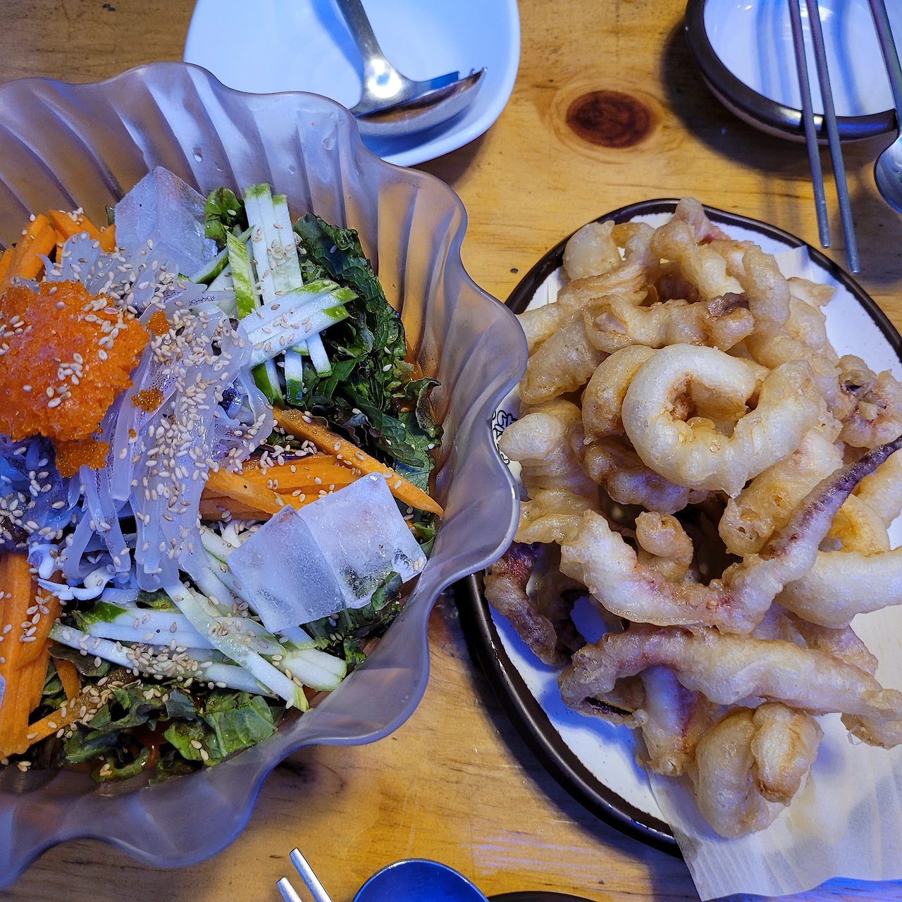 오징어물회와 튀김