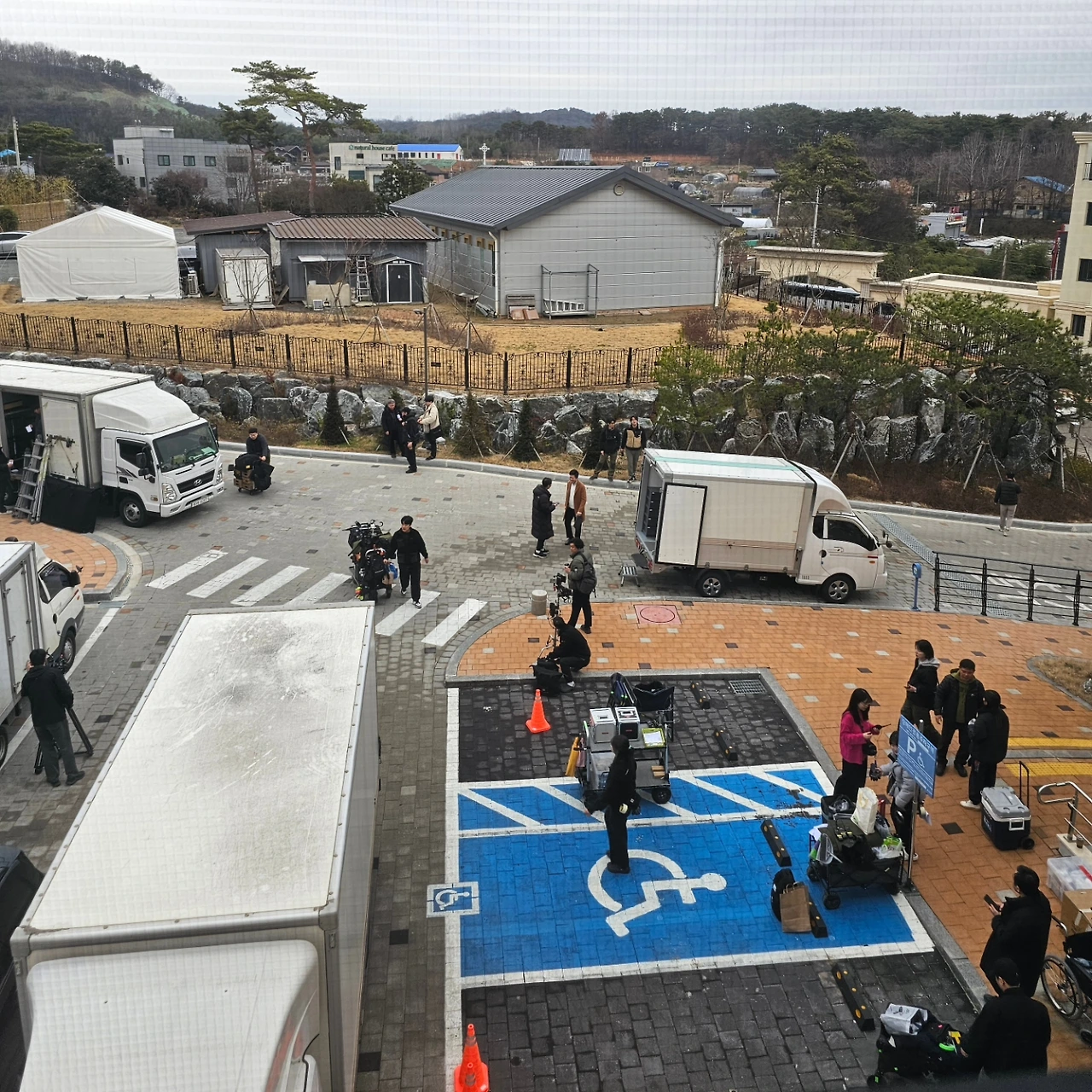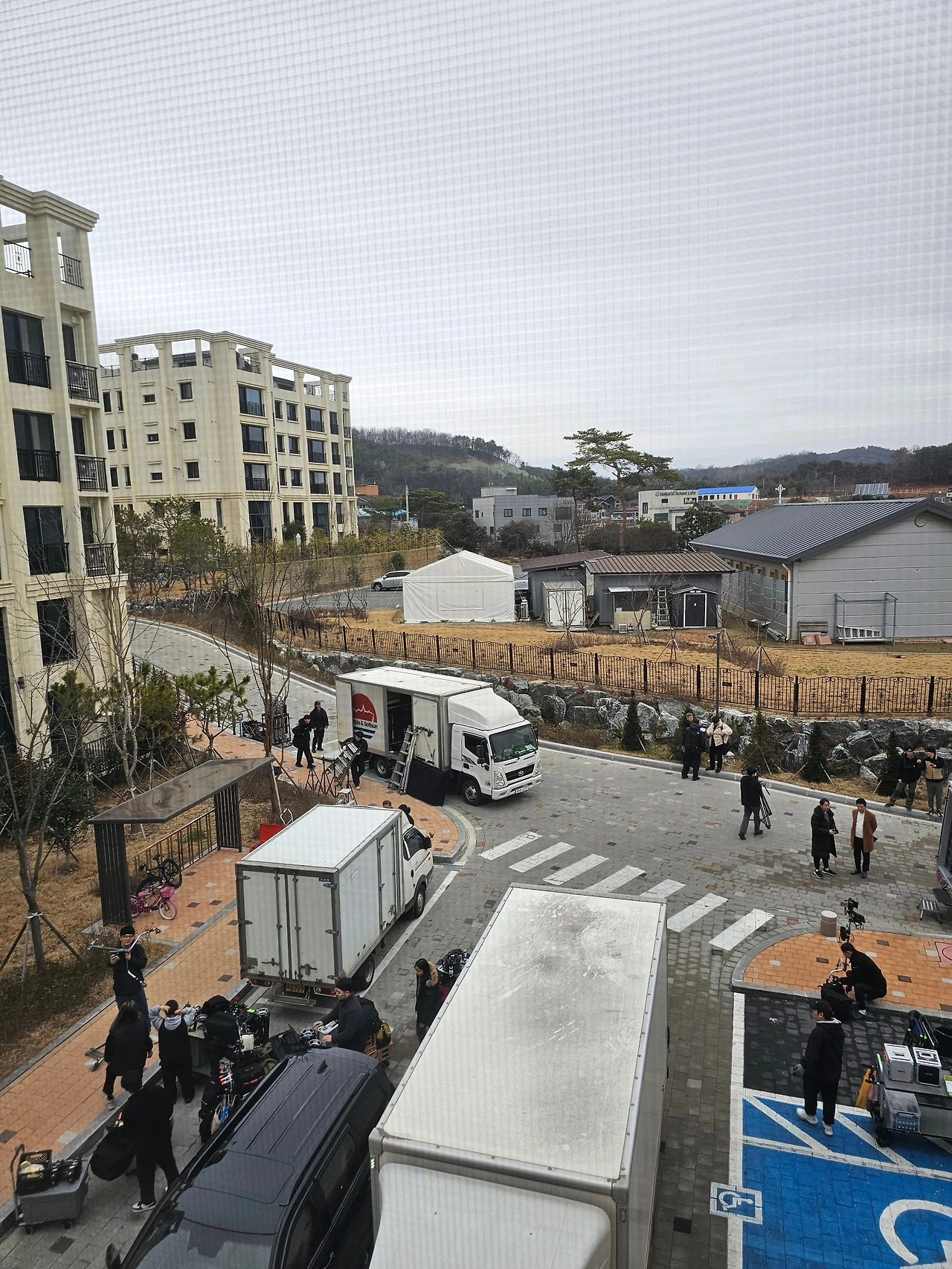 살고 있는 집, 같은동에서 넷플릭스 드라마 아이쇼핑 촬영. 비가 온데도 열심이다. 고생하네.
