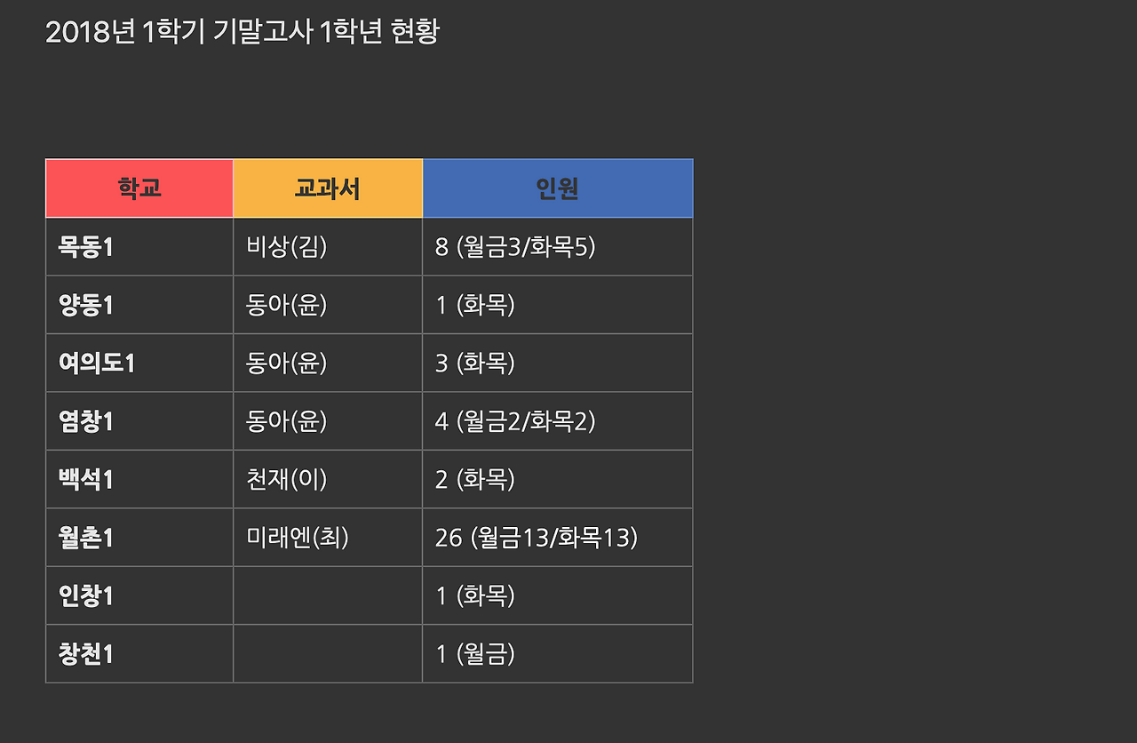 행, 열, 너비를 설정하여 만들 수 있는 표 메뉴가 있습니다. 수치가 필요한 데이터를 정리할 때 요긴하게 사용하실 수 있습니다. 엑셀 작업 환경이 제일 좋지만, 간단한 내용은 경우에 따라 월간 스케줄이나 주간 스케줄을 만들어 사용하실 수도 있습니다.