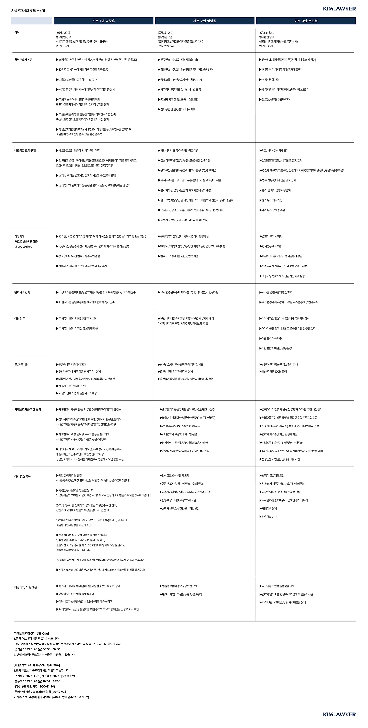 저의, 저희 팀의 마음이 변호사님들께 닿기를 바라면서, 서울지방변호사회 회장선거 공약 비교표와 정견 그리고 법률방송 후보자 인터뷰 스크립트를 공유드립니다.