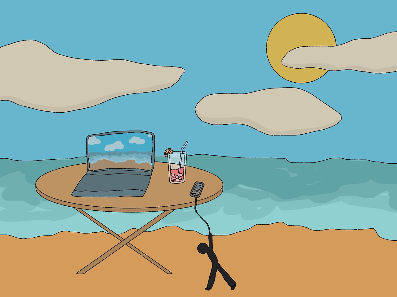 파란 하늘과 바다, 테이블 위에 놓인 태블릿 그리고 사원증에 매달려 있던 엄마의 모습을 그리니 Workcation이라는 단어가 떠올랐다.