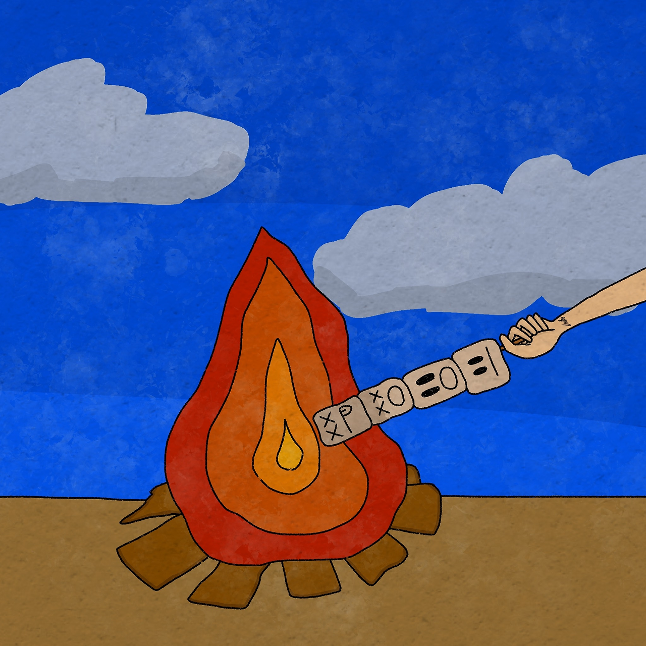간결한 선과 명확한 색으로 표현된 그림을 보자, 즐거운 캠프 파이어의 불꽃 보다 마시멜로의 표정과 색상에 더 눈이 간다.