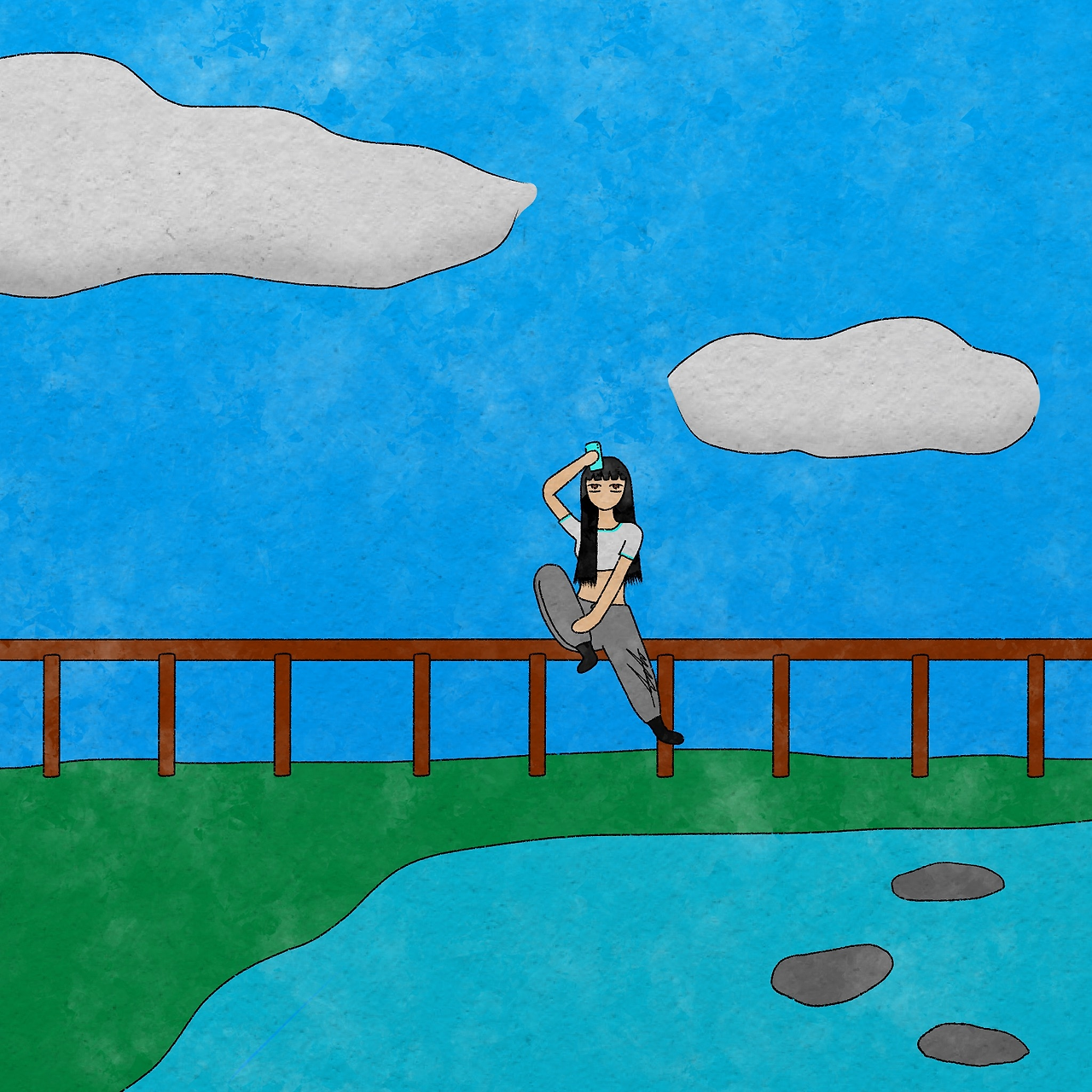 하늘은 파랗고, 둥글고 날렵한 구름이 떠 있고, 여린 잎에 가득한 풀밭 앞으로 징검다리가 놓인 낮은 강물이 한 점의 움직임도 없지만 분명히 흐르고 있다.