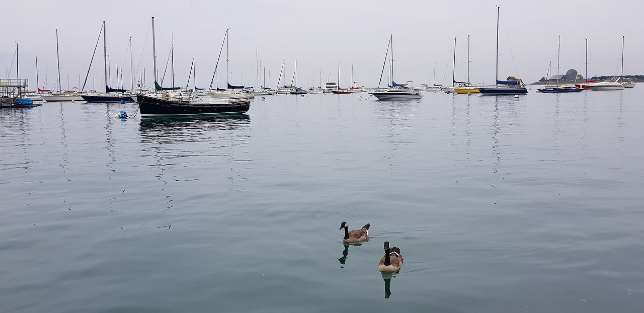 미시간 호수의 요트와 보트들