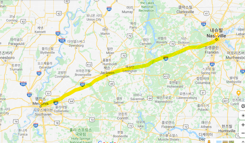 내슈빌을 출발하여 약 세 시간 반을 달려 멤피스에 도착한다. 멤피스는 블루스의 고장이기도 하고 앨비스 프레스리의 본거지이기도 하며 그에 영향을 받은 랙 앤 락의 고향이기도 하단다.