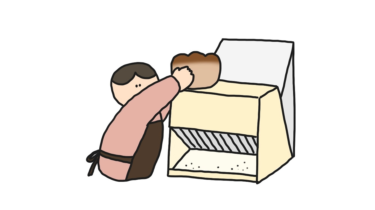 식지 않은 식빵은 잘 찌그러지기 때문에 반드시 안쪽까지 식을 수 있도록 시간을 두고 기다려야 했다. 식빵의 양 끝이 허투루 잘려나가는 일이 없도록 유난히 신경썼다. 식빵 봉투는 식빵 크기와 딱 맞아야 예쁜데, 이런 이유로 식빵 봉투에 식빵을 잘 넣는 데에는 요령이 필요했다.