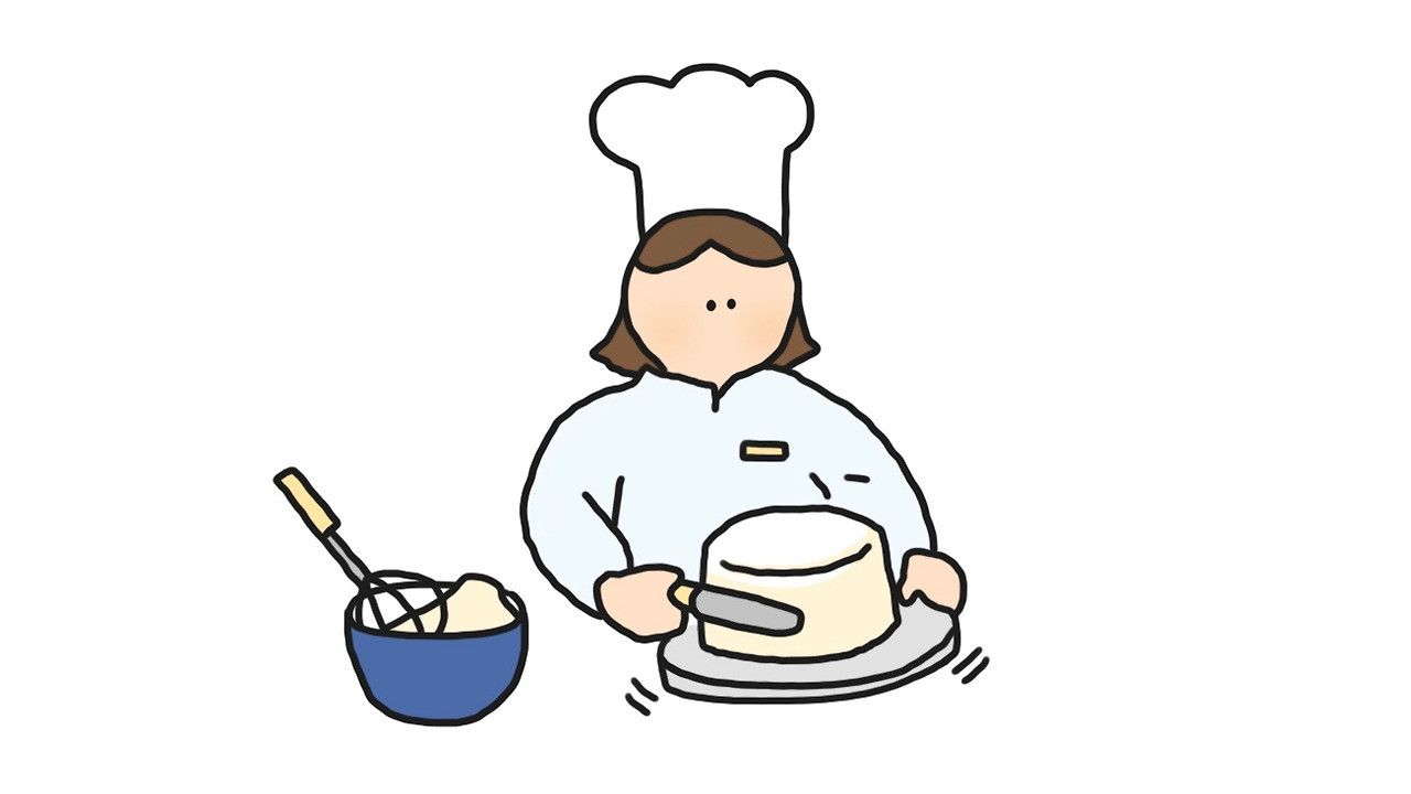 케익 겉면에 생크림을 매끄럽게 바르는 모습은 아무리 구경해도 질리지 않았다. 생크림 위에 계절과일로 장식하면 케익이 완성되었다.