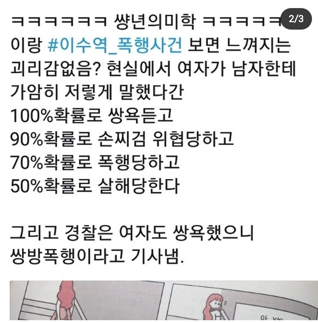 위에 올린 이수역 사건의 건과 같은 논리였습니다.