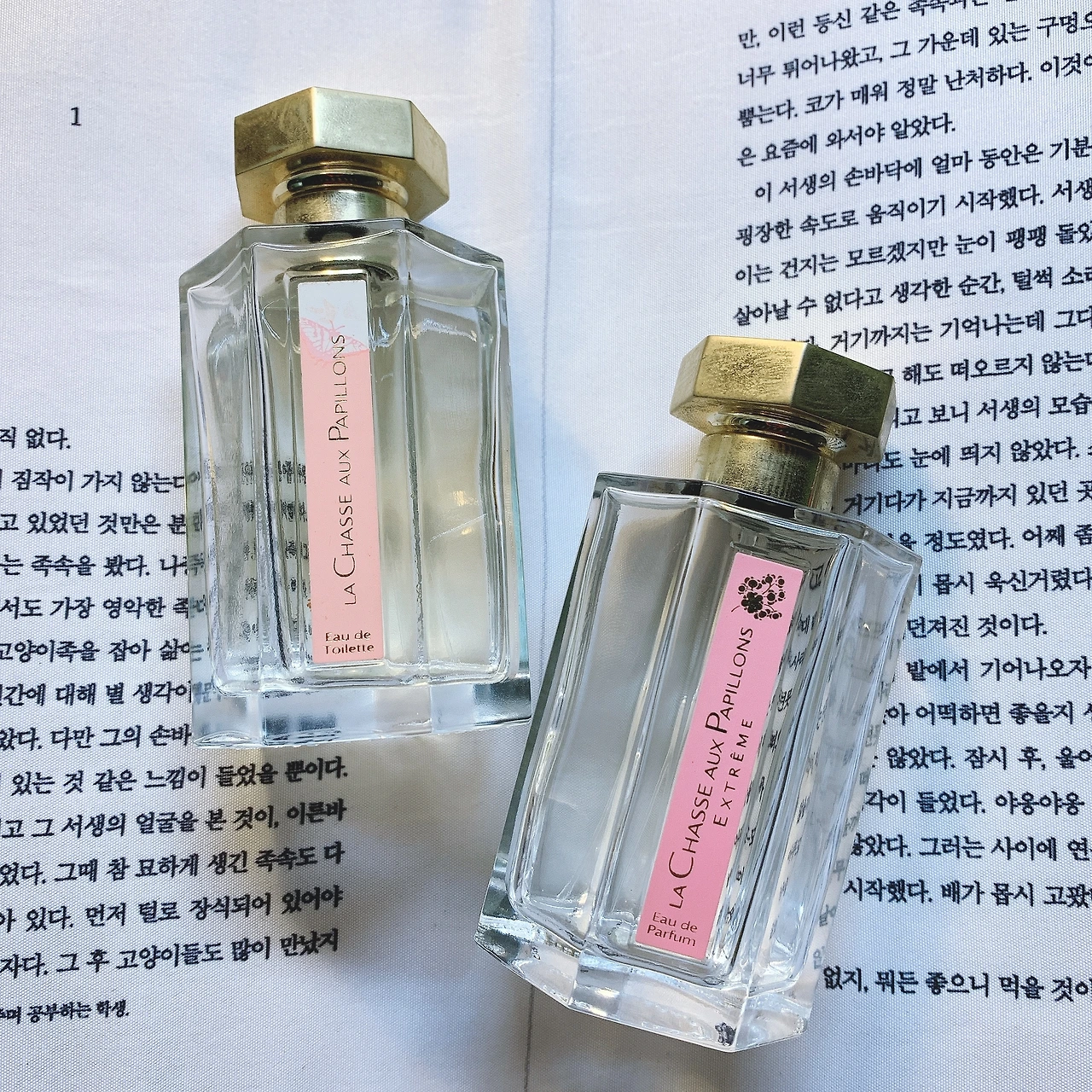 긴 고민 끝에 라 샤스 오 파피용 엑스트렘과 떼 뿌르 엉 에떼를 샀지만 그 다음해 다시 파리를 찾았을때 라 샤스 오 파피용 마저 구입했다. 엑스트렘과의 차이는 각각 오드뚜왈렛과 오드퍼퓸의 차이.