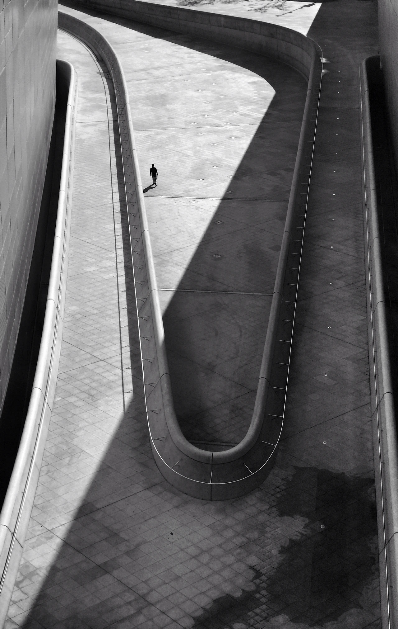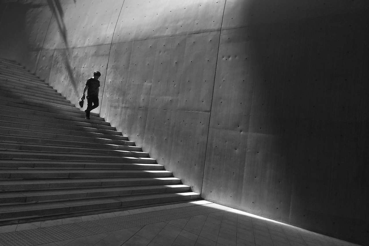 주변의 계단을 이용하여 움직이는 사람들을 찍고 흑백으로 보정하면 도회적인 차가운 느낌의 사진을 만들 수 있다. DDP 주변을 구경하며 이동하는 사람들을 함께 사진에 담으면 이야기가 있는 사진이 된다. 이때 흑백으로 보정할 것을 염두에 두고 검은색 옷을 입은 사람 또는 양복 입은 남자를 건물의 크기에 비례하여 작게 찍으면 좋다.