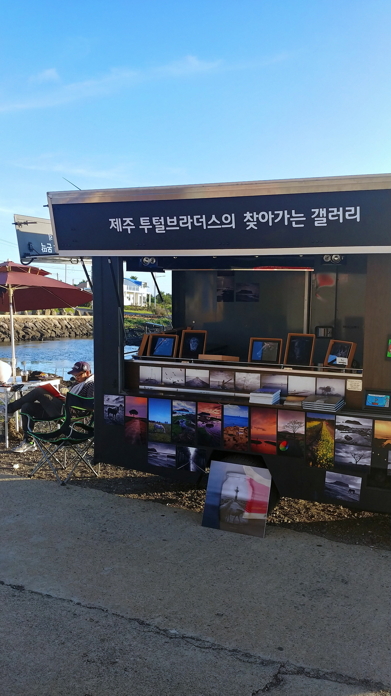 정확히는 제주시 환경면 신창리 1322-3번지이다. 전에 신창마을 해녀쉼터가 있던 자리이다. 최근에 누군가가 이곳에다 투명카약 체험장을 만들었다. 우리는 이곳 주차장에 갤러리트럭을 세워 놓고 전시장을 꾸미기 시작했다.