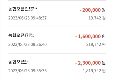 6월 23일 순정이게 20만 원을 보낸 후 나의 통장 잔고