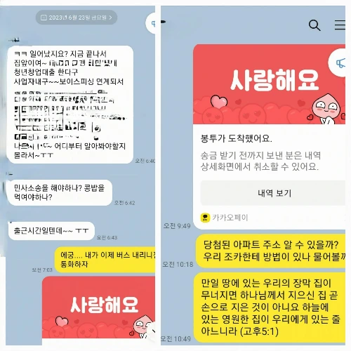 "알겠어. 내가 분양권 살 수 있는지 알아볼게, 근데 나 분양권 사고파는 것, 하나도 모르는 거 알지? 내가 아파트 청약을 해봤겠어, 아파트에 대해서도 아는 바가 없어. 근데 한번 알아보자. 길을 찾아보자. 하나님께서 우릴 망하라고 고난을 주실 분이 절대아니니깐. 안심하고."