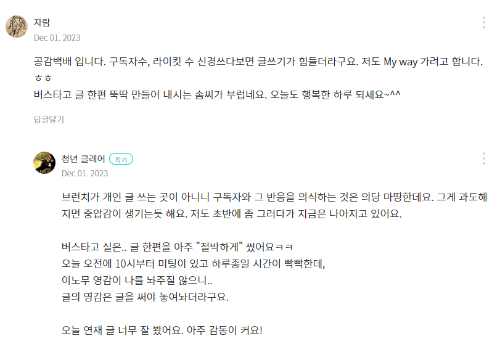발췌 출처 : 브런치 댓글, 라이킷 수 올리는 비법 (brunch.co.kr)