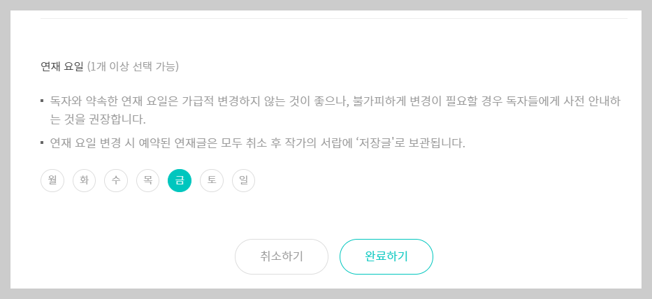 연재 브런치북의 경우 <요일 변경>시 사전에 안내해야 한다고 합니다.