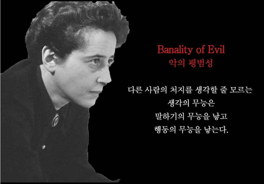 한나 아렌트는 유대인으로서 홀로 코스터 희생자가 될 뻔했으나 구사일생으로 살아 훗날 미국에서 정치철학 등으로 명저를 냈다 한다. 그녀는 <예루살렘의 아이히만>이란 저서에서 악의 평범성을 심도 있게 기술하였다고 한다. 500만 명의 유대인을 수송하는 일을 자행했던 나치 독일의 희대 살인마인 아이히만은, 그 자신의 말로는 ' 평범한 가장으로서 조직에 충성되게 성실하게' 맡겨진 업무를 수행했던 사람이었다. 그는 사형선고를 언도받게 될 '세기의 재판'에서 심지어 칸트의 철학을 인용하며 '도덕의 보편성'을 말했다 하니 기가 찰 노릇이다. 그가 발을 딛고 살았던 독일의 당시 상황에서 자신은 도덕적 보편성에 따라, 조직의 위계와 명령에 충성해서 일했기 때문에 죄가 없다는 것이다. 독일인에게 동의해 마지않을 '보편성'이 타인이나 다른 민족에게는 '보편성'이 될 수 없다는 것을, 도대체 누가 가르쳤어야 하는가? 심지어 유대 학살 현장엔 동족 유대인도 부역한 이들이 있었다고 한다.