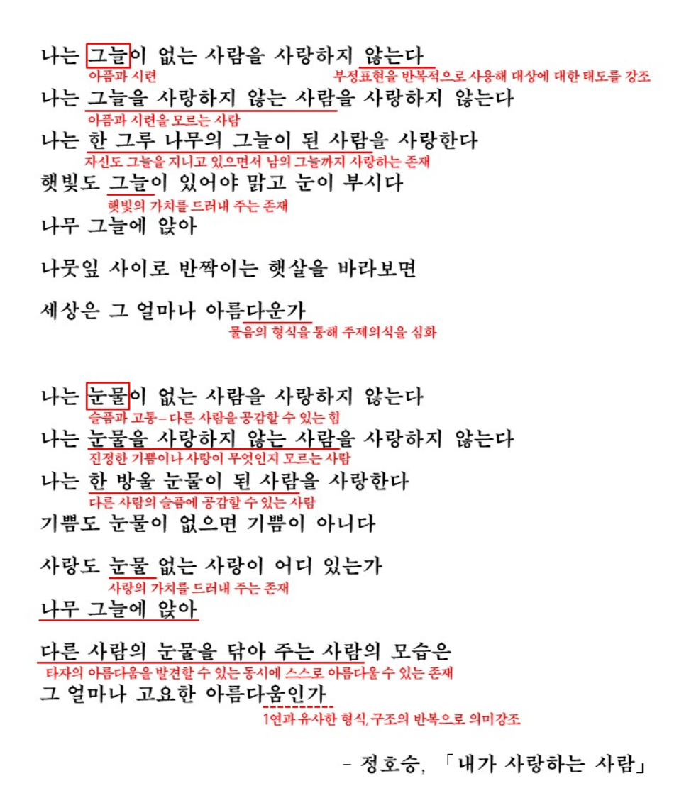 나는 한 그루 나무의 그늘이 된 사람을 사랑한다