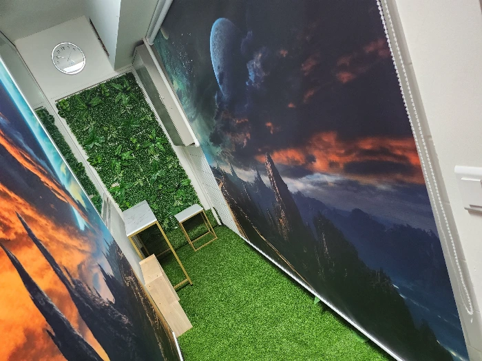 고요의 방. 공부하는 학생이나 취준생, 고시생 등등 그런 분들이 고요하게 자신을 털어놓고 쉴 수 있는 공간이 있었으면 좋겠단 취지에서, 창고를 개조해서 만들었어요.