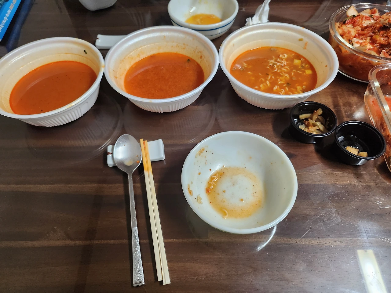 천재는 며칠 전에도 왕뚜껑 시리즈를 맛 종류별로 3종류를 끓여 먹자 했다. 우리는 그 자리에서 후루룩 3개의 컵라면을 왕처럼 다 해치웠다. 종종 고급 레스토랑을 갈 수도 있고, 고가의 해외여행도 갈 수 있겠지만, 둘 다 그것을 기피하는 이유는 우리의 내민 손이 빈말이 되지 않기 위한 고심의 흔적이 아닐까 싶다. 물론 천재의 우울증이 완치되는 날 우린 멋진 여행을 계획하고 있고 종종 소박하나마 스위트한 외식도 한다.