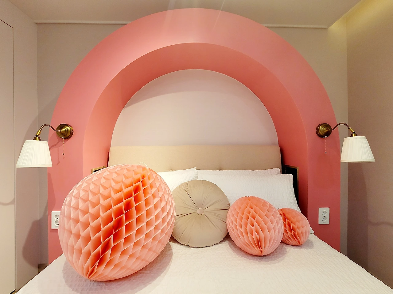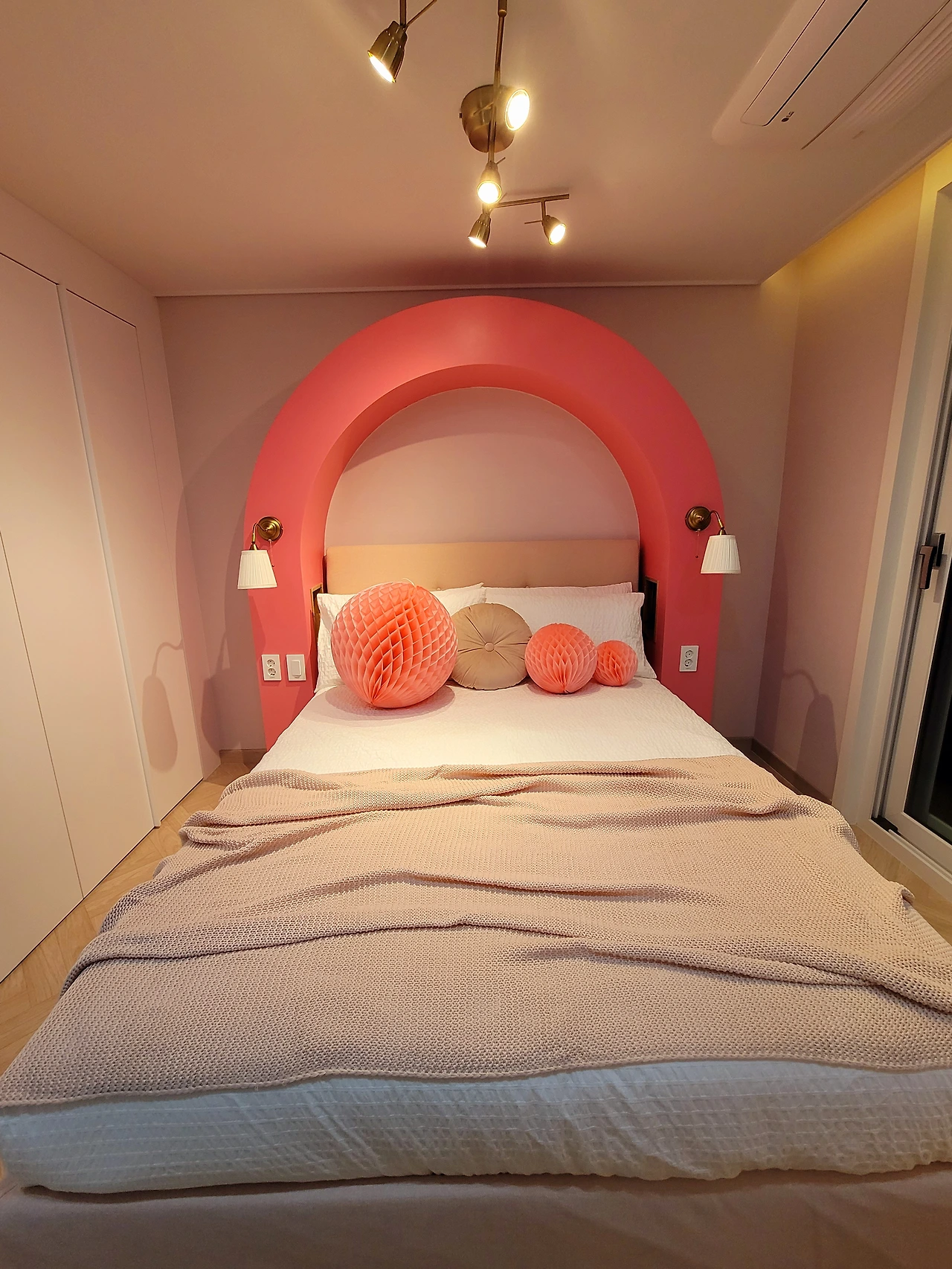 새 침구를 세탁하여 건조까지 마친 후 세팅하던 그 순간 우리 모두의 손길은 주름 하나까지도 계획했을 정도로 정성을 들였다. 특히 사장인 내가 얼마나 고생하며 이 핑크 아치를 온갖 정성으로 완성했는지 옆에서 모두 지켜봐 왔기에 더 그러했는지도 모른다.