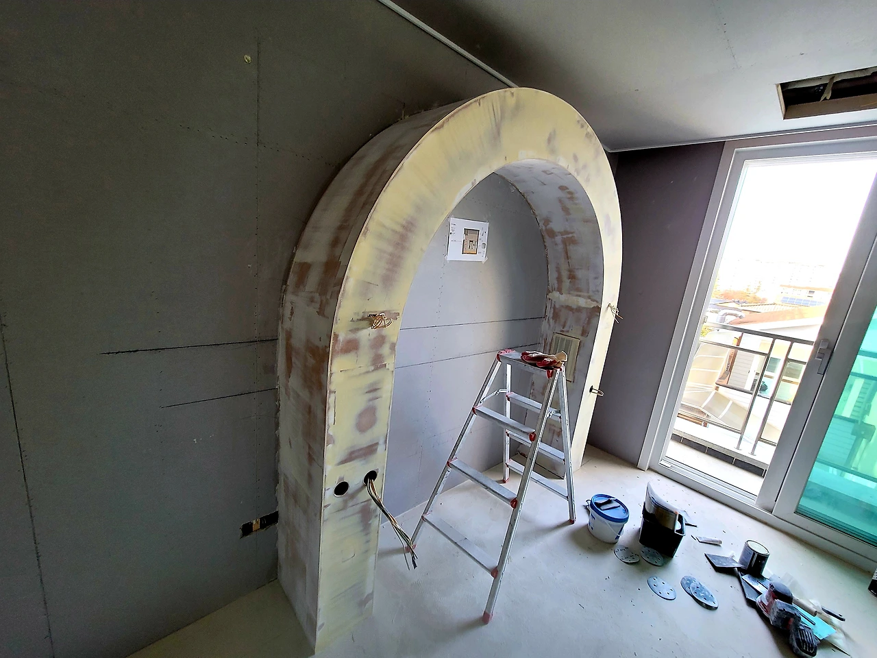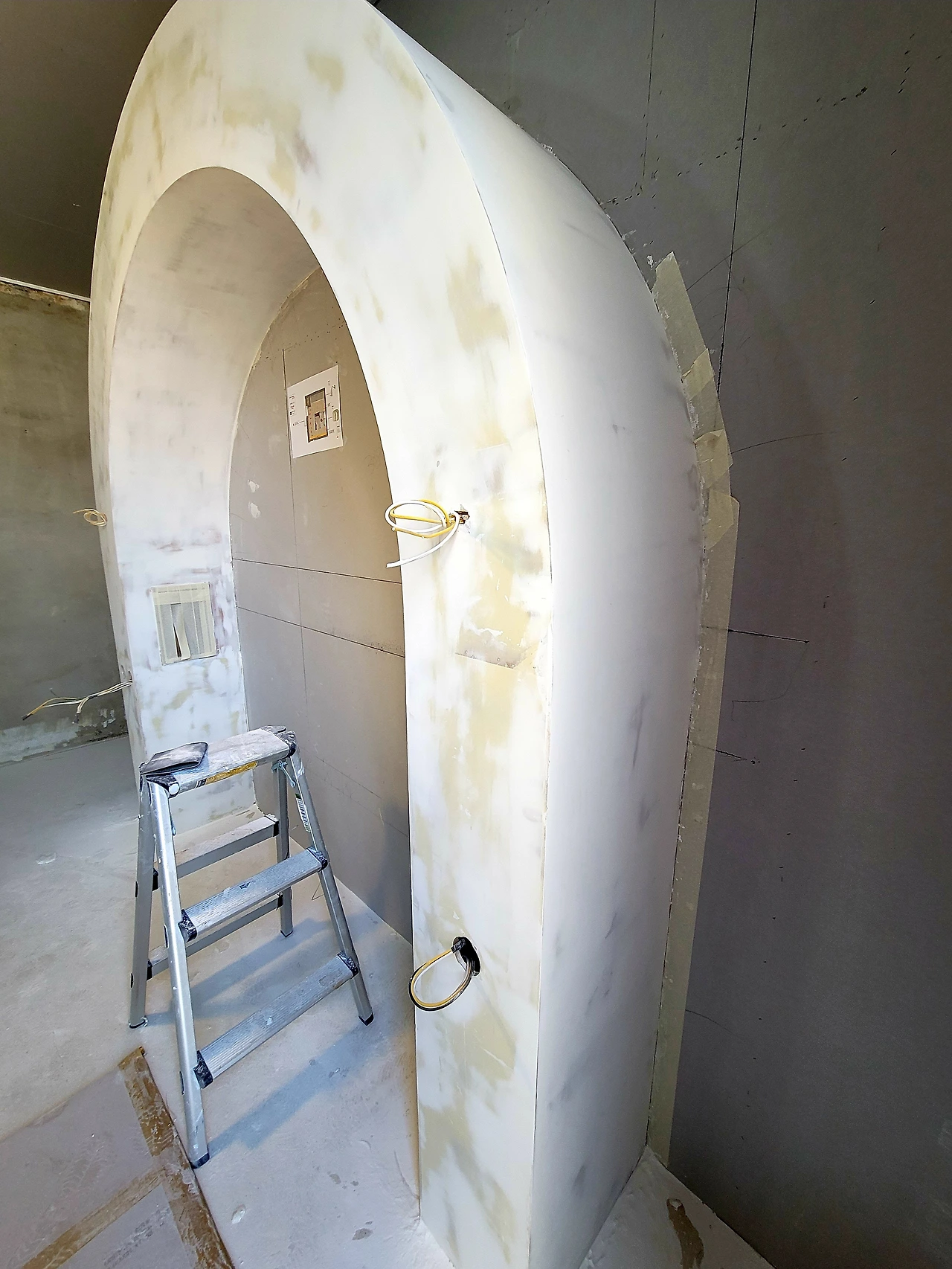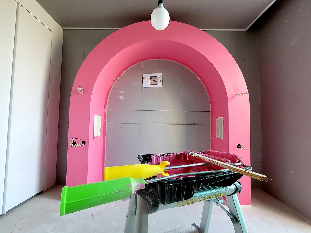 공주방을 만들기 위해 설계한 아치, 목공 사장님께서 정성껏 만들어 주신 이 완벽한 아치를 잘 마감해야 한다는 부담이 커졌다. 필름 마감보다는 도장 마감이 더 나을 것 같다는 필름 사장님의 권고에 따라 더 나은 마감 방법으로 결정하는 것은 당연했다. 문제는 내가 직접 하게 되었다는 것!