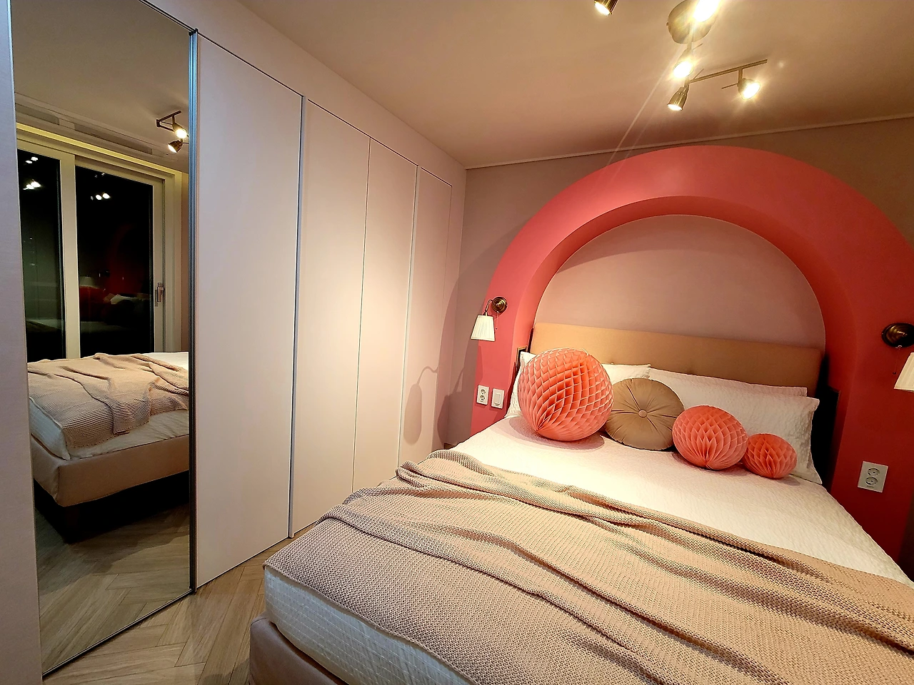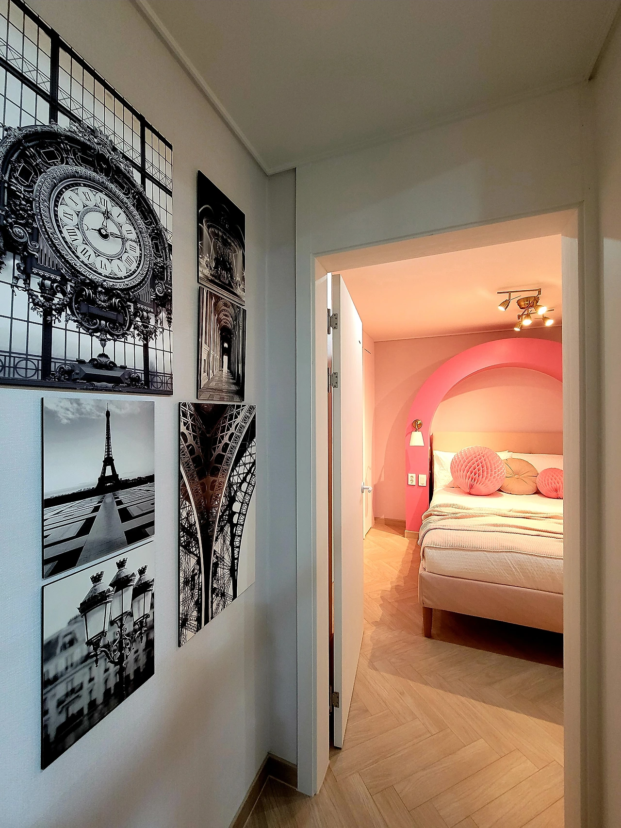 도배마감 후 침대를 설치하고, 침대 셋팅 후 데코와 조명까지 모든 스타일링이 완성되었다. 공주방을 갖기를 원했던 이 방의 주인이 진심으로 좋아해 주기를 바라면서 모든 정성을 들였다