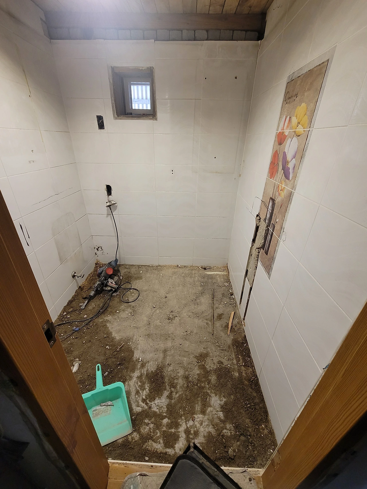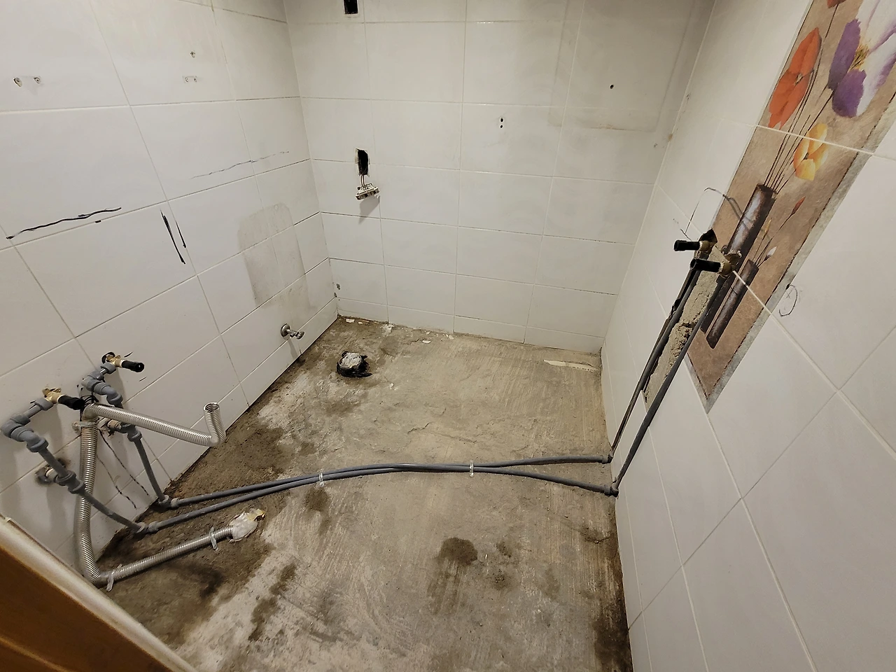 세면대와 반신욕 샤워 배관을 나누어야 해서 바닥을 전체 철거하고 샤워 배관을 신설했다. 철거한 바닥에는 타일시공으로 마무리 하고 1일 양생기간을 두는 것으로 1일차 시공 완료!