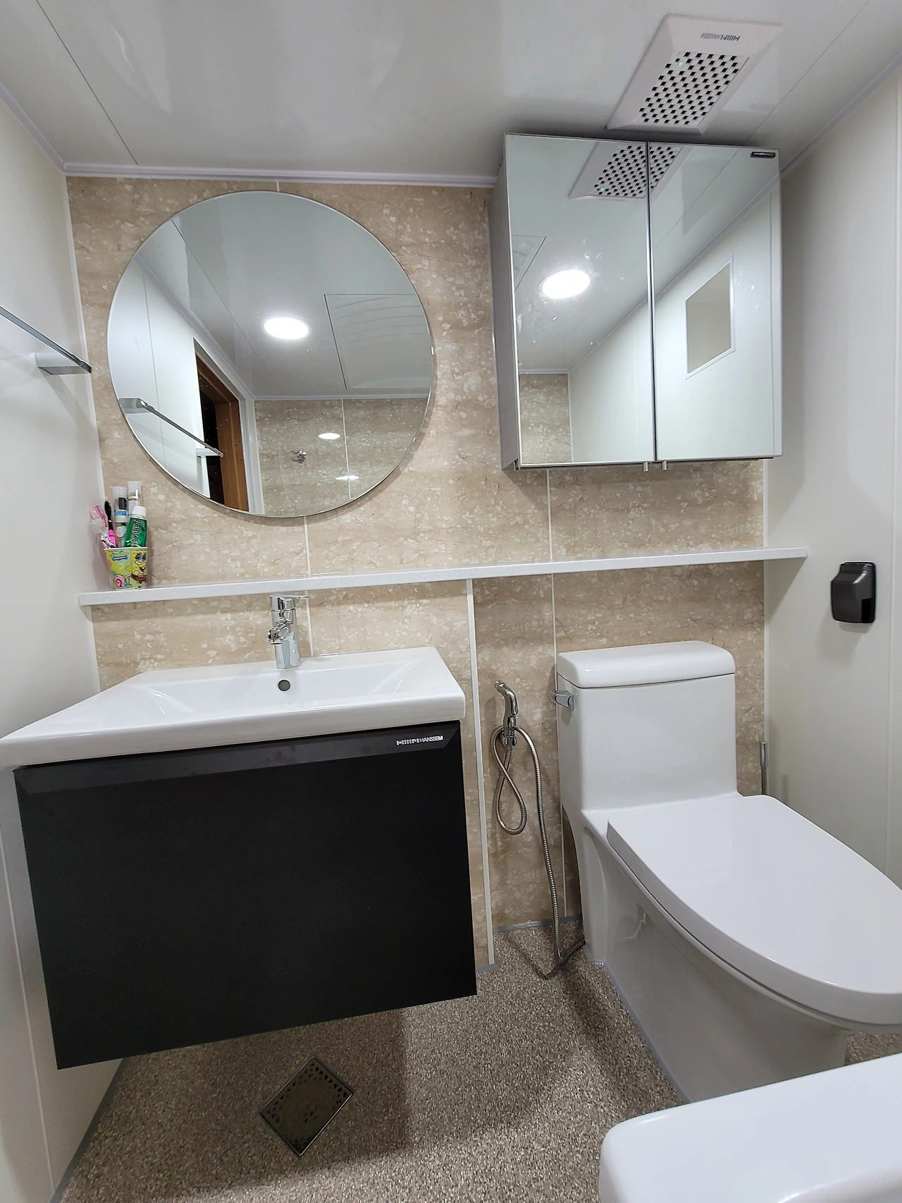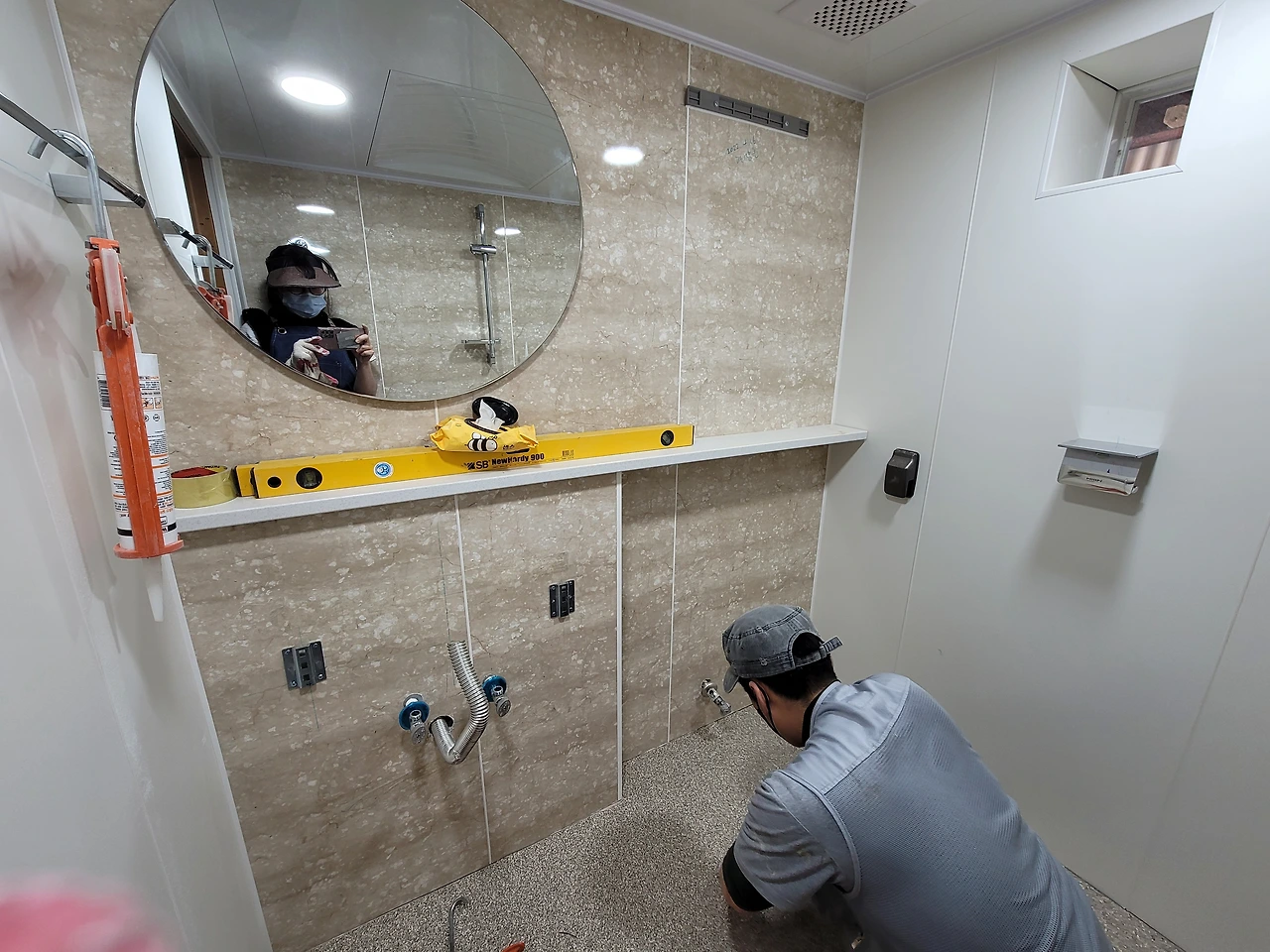 시공2일차에 드디어 완성된 욕실은 위생적인 공간으로 재탄생되었다. 리모델링의 힘이 이런것이구나... 나의 역할에 다시 한 번 자부심을 느꼈더랬다.