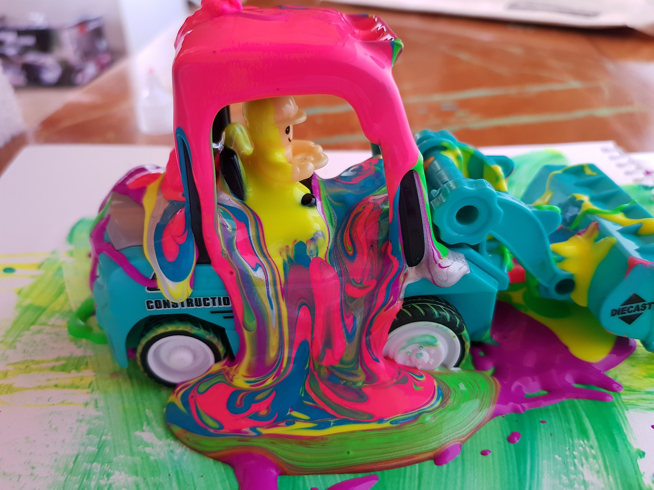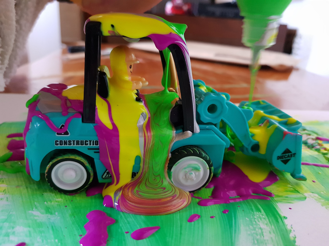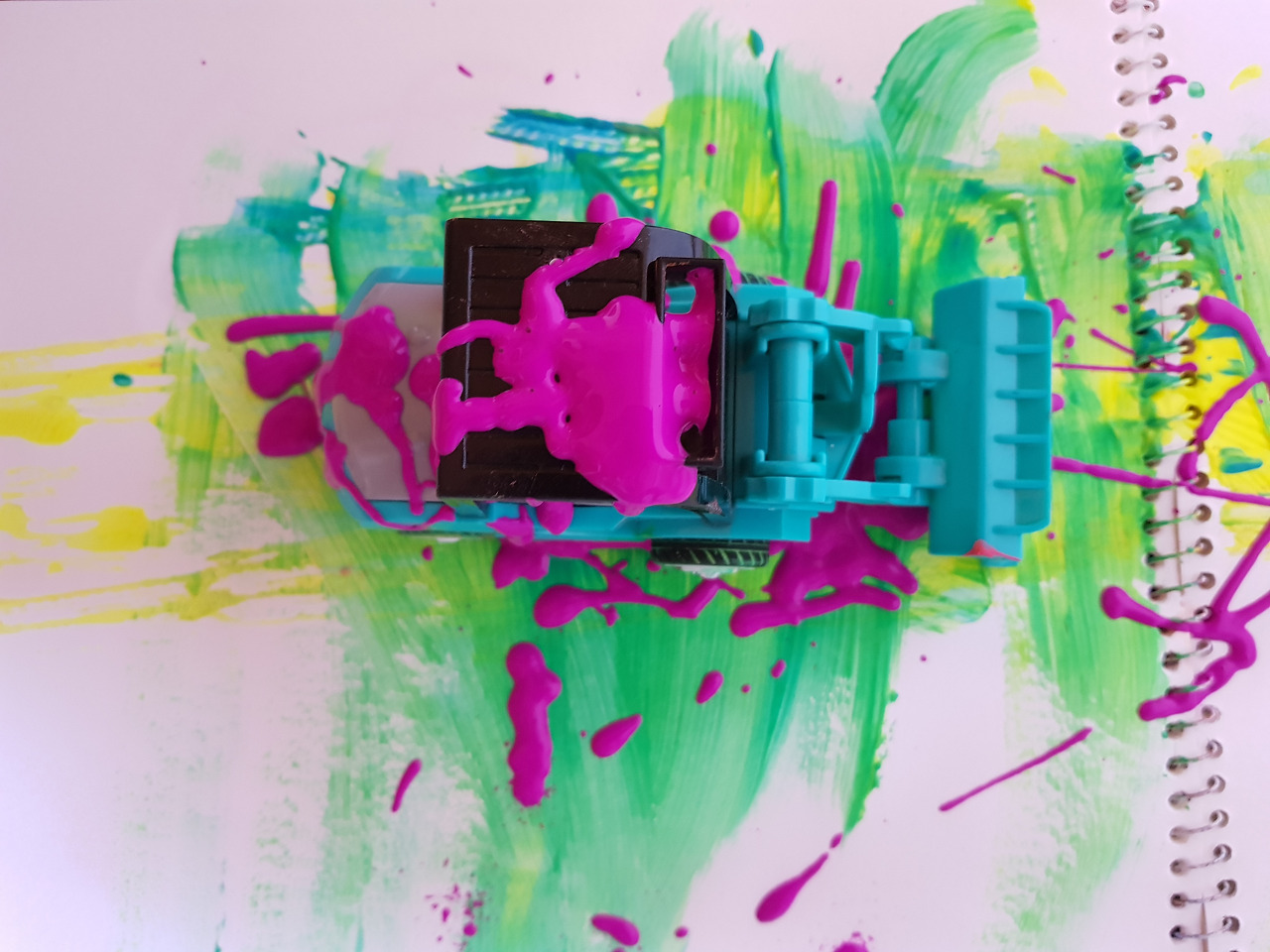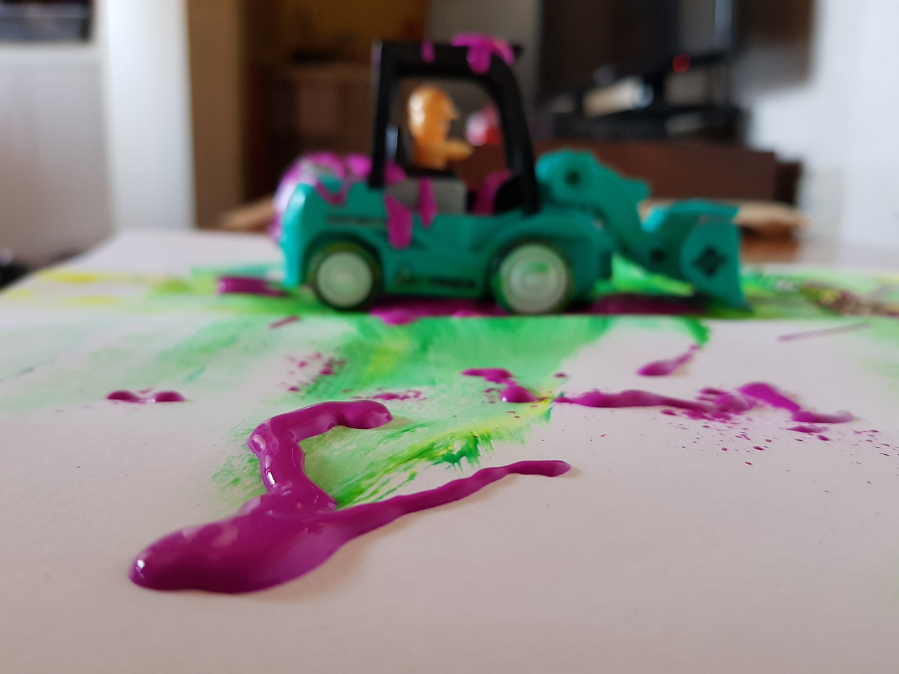 물감으로 범벅이 된 아이의 손과 자동차, 아이의 스트레스 풀리는 소리가 들려왔다.