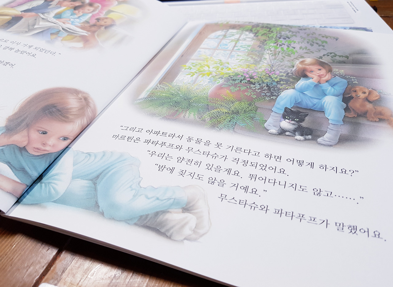 평소 양장판 동화책들이 무겁고 (한쪽 팔에 들고 읽어주다 보면 팔이 떨어져 나갈 것 같다) 어디 가지고 다니기에 자리를 차지하는 것이 불만이었는데, 페이퍼북은 책 그 본질에 충실하였더라는 만족감이 있었다. 생활동화라는 장르는 아이의 공감능력을 높여주고 삶을 배우는데 도움이 된다고 생각한다. 또한 아이가 다양한 문화를 책으로 먼저 접해보는 것이 의미 있겠다고 판단했다.