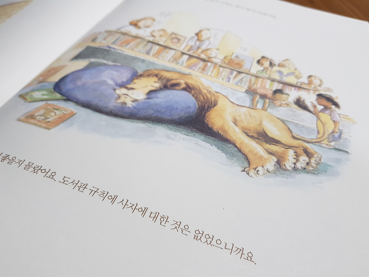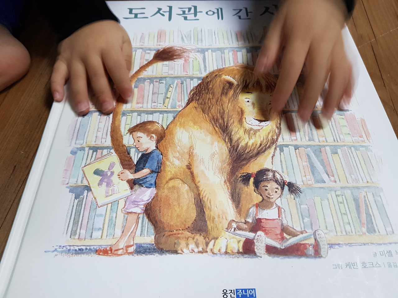6. 읽을 때마다 먹먹한 감동으로 눈물을 흘리게 되는 책이 있다. 물론 동화책이라고 그런 감동이 옅을 이유가 없다. [도서관에 간 사자]는 다소 긴 내용이지만 도서관에 사자가 나타났다는 판타지 상황 속에 인간과 교감하고 감동을 주고받는 관계에서 배울 것이 많다. 관계의 소중함을 깨닫게 되는 명작이다. 잔잔한 감동을 이해하려면 두 돌에서부터 세 돌까지 길게 읽어줘 보자.