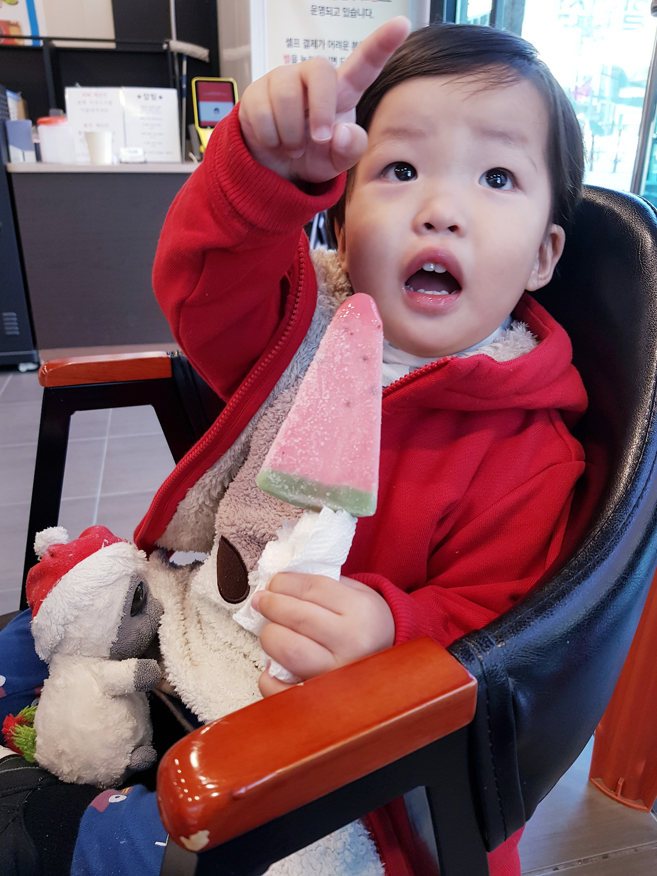 12유로의 정체는 유후였다. 여기에 크리스마스 한정판으로 씌운 산타모자는 아이가 잡고 다니기 가장 좋아하는 부분이었다.
