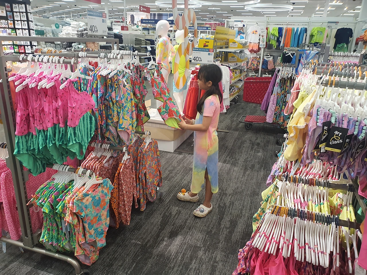 타겟에는 아이들이 좋아하는 2인용 의자가 딸린 카트가 있다. 우리 아이들은 열 살, 열 한 살 남매인데 작고 마른 편이라 착석이 충분히 가능하다.