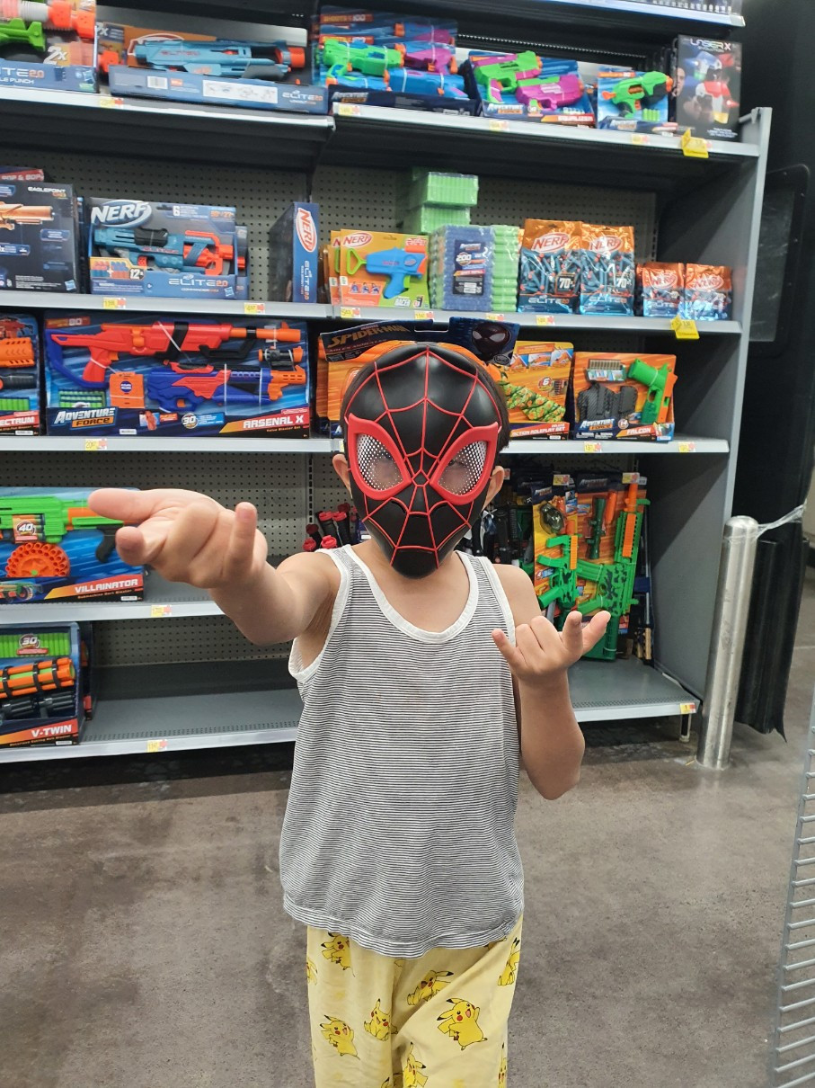 오밤중 장보기가 마냥 즐거운 아이들. 장난감 코너에서 꼭 사고 싶었던 것들을 획득할 수 있게 되었다.